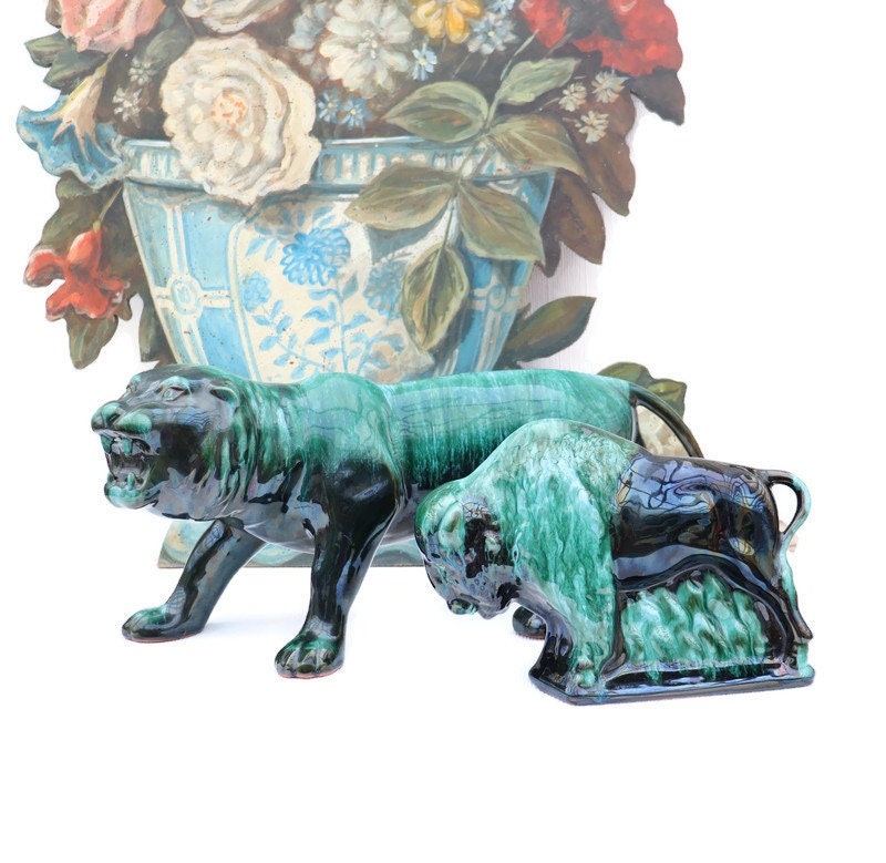 Very large Mid Century Blue Mountain Pottery Tiger Figure Made in Canada.