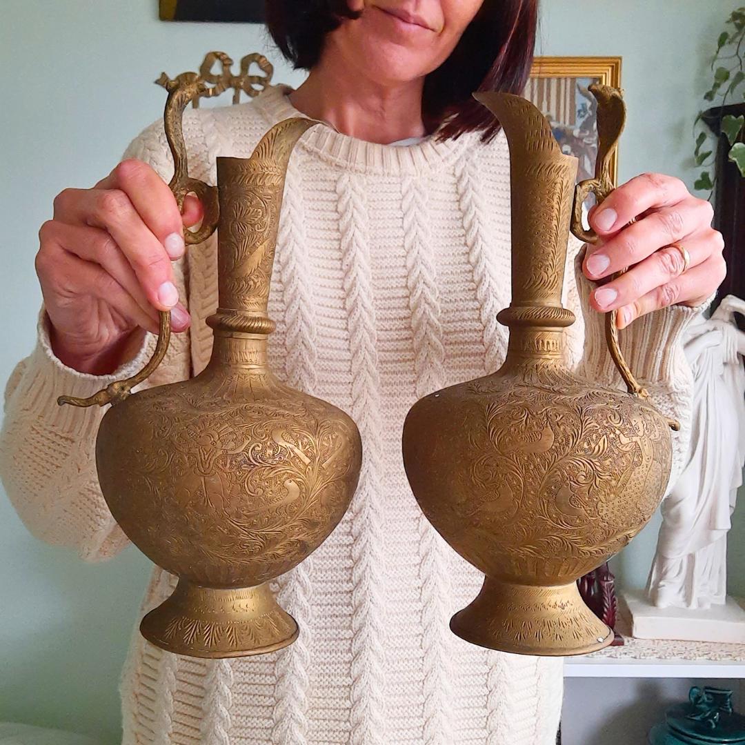 Interior designer's dream, pair of truly antique Indian vases that will elevate any quality interior. Perfect statement piece that will be treasured forever! Also will make a wonderful gift for the home.