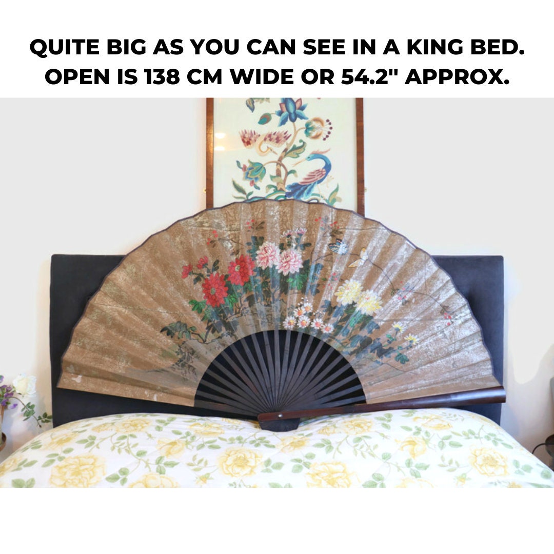 BEAUTIFULLY HAND-PAINTED ,THIS ATTRACTIVE WALL FAN WOULD APPEAL TO ANYONE INTERESTED IN ORIENTAL HOME DECOR ; PERFECT TO ADD AN EXOTIC AND BOHEMIAN LOOK TO YOUR HOME .