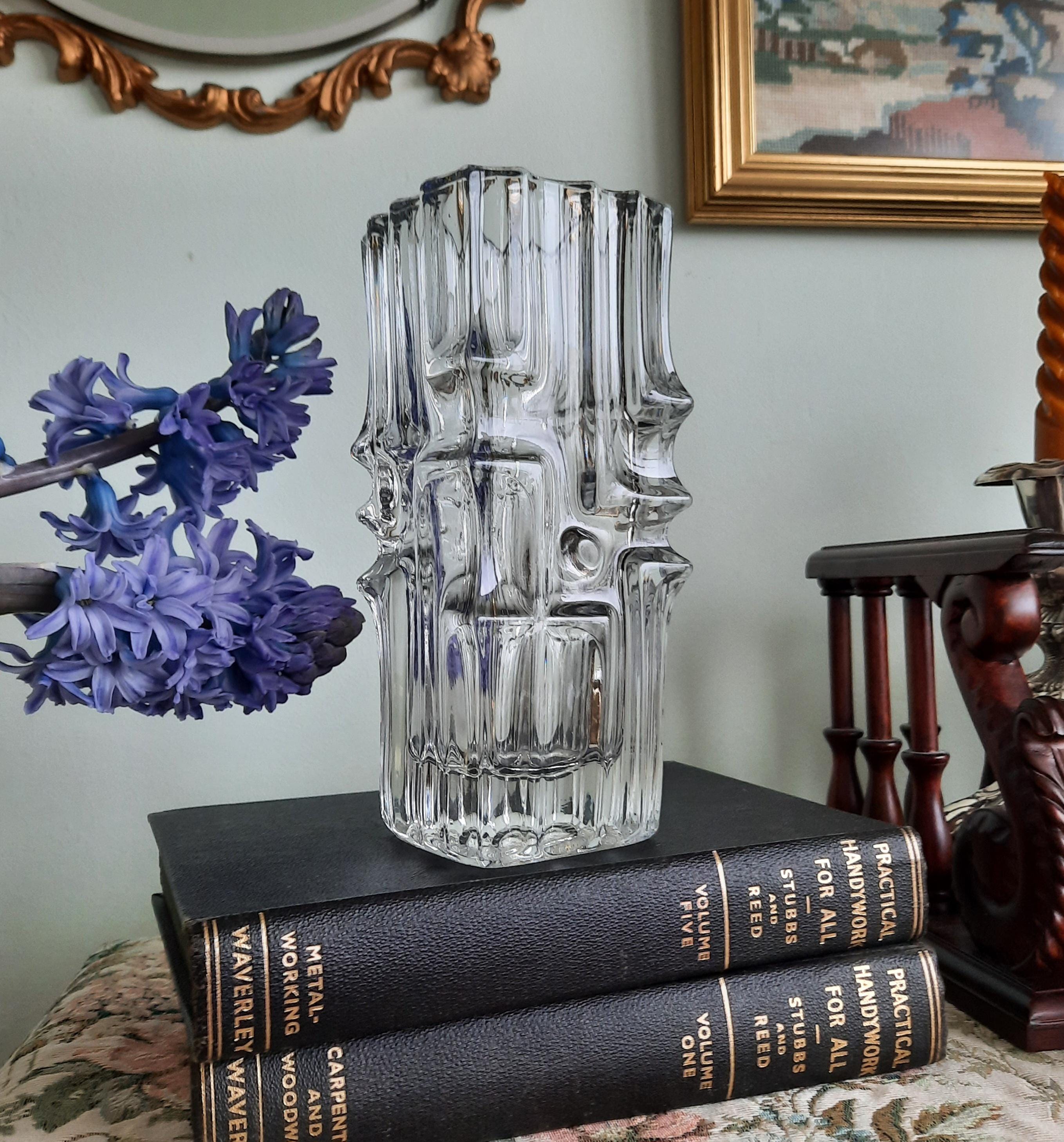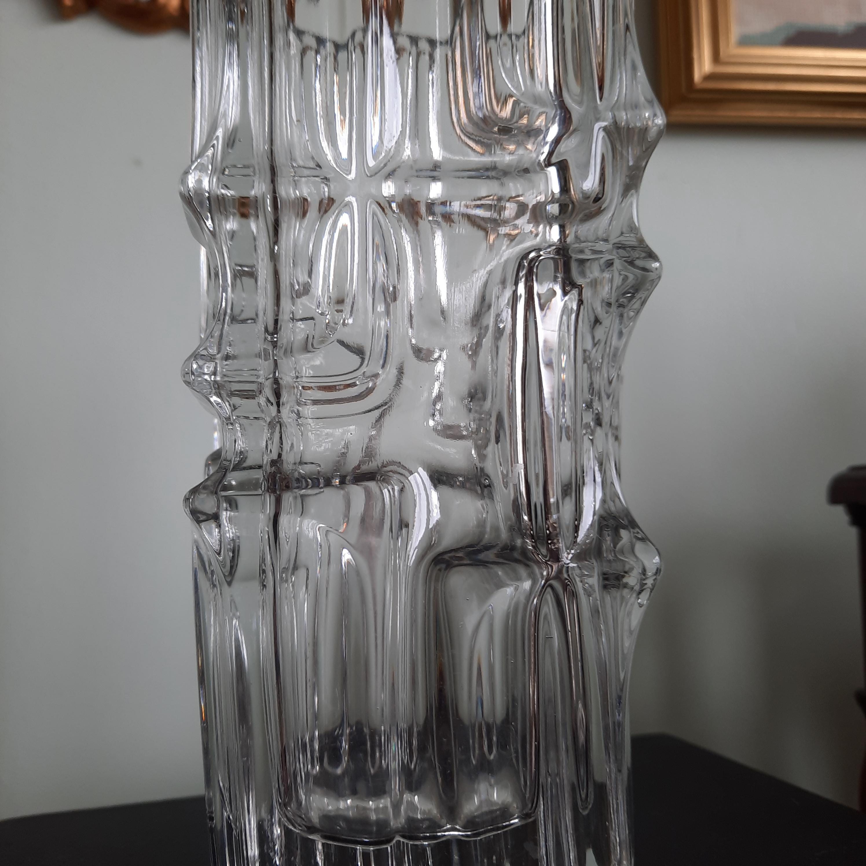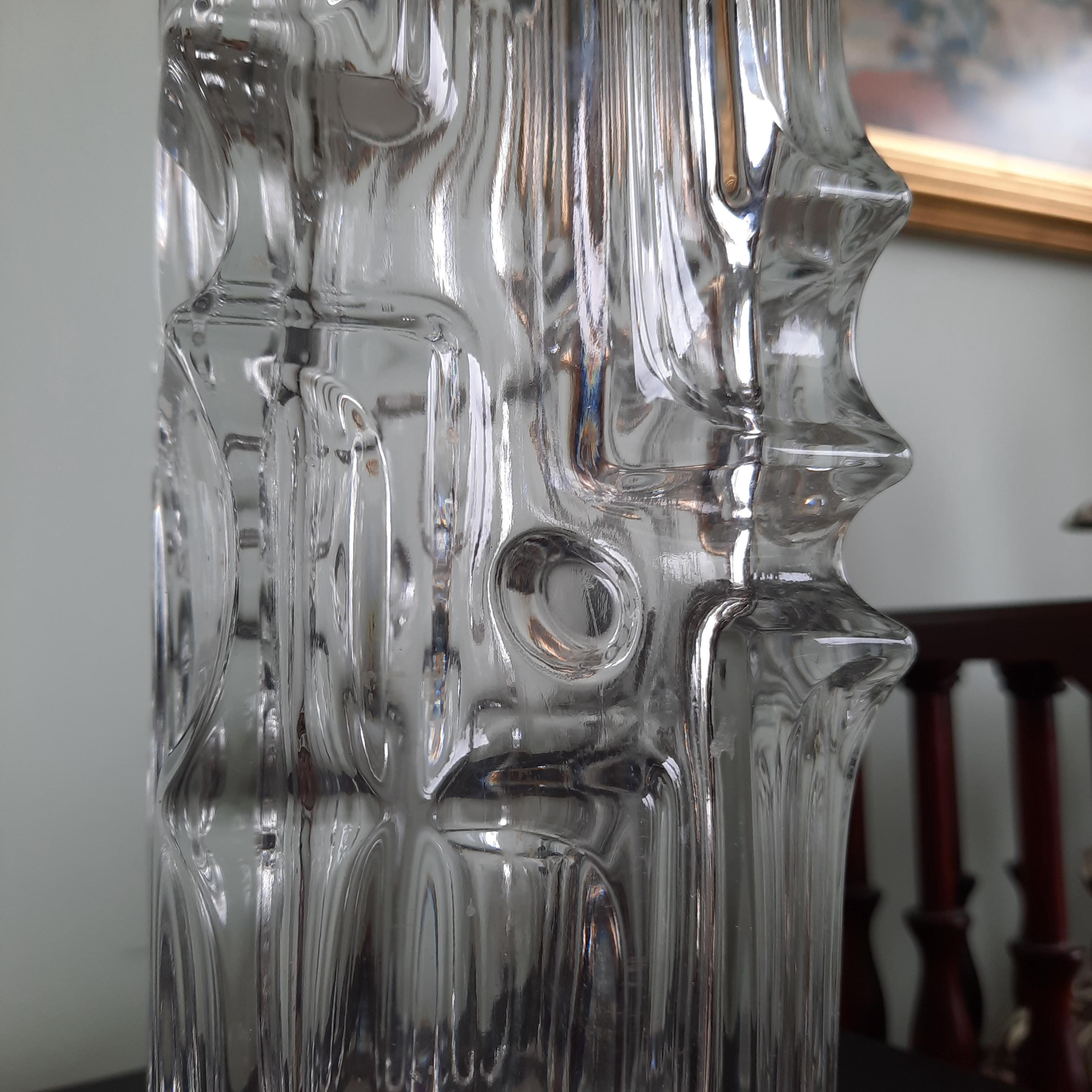 Mid Century Modern vase with an abstract geometric relief designed by Vladislav Urban for Sklo Union Rosice Glassworks, in the 1968. 7.7'' High