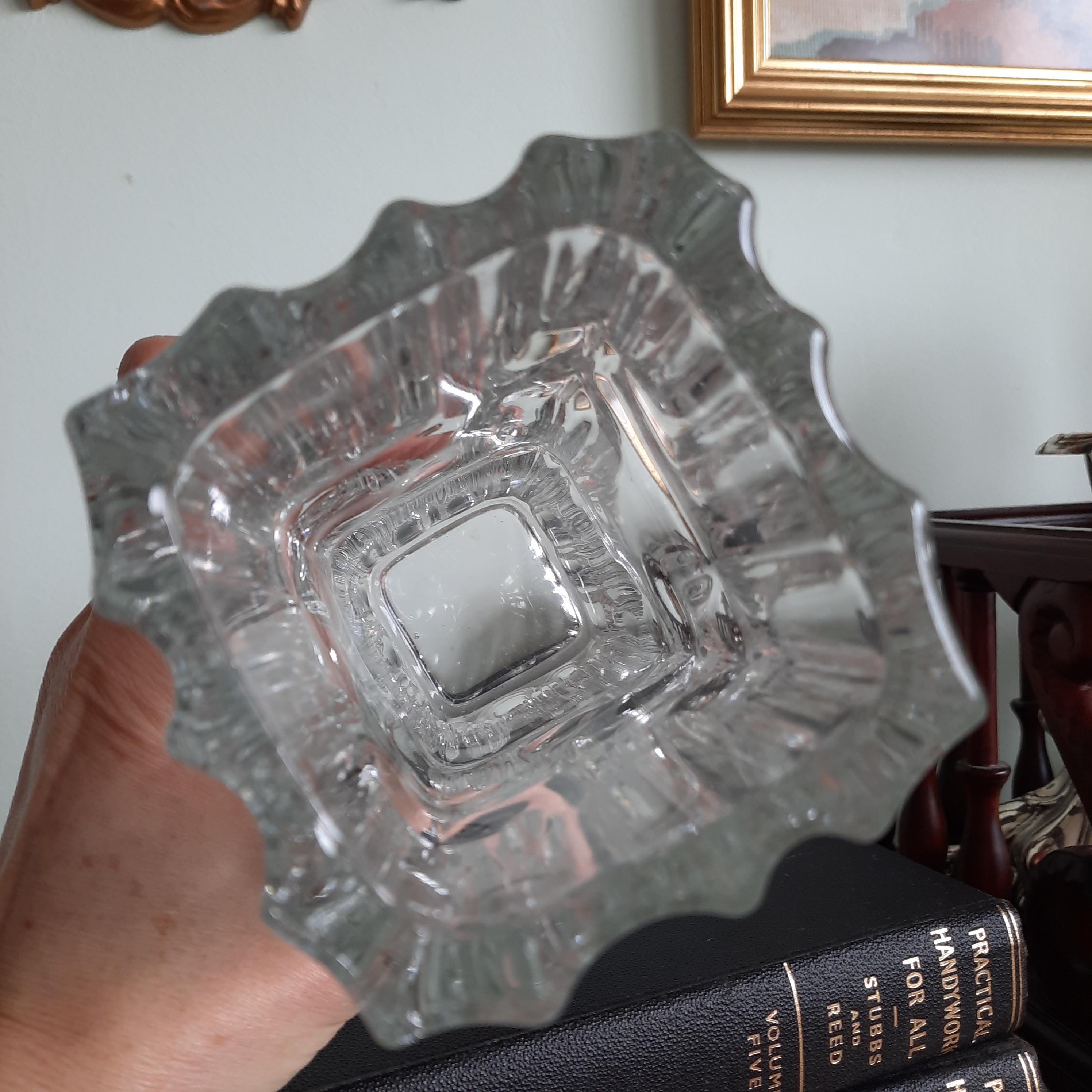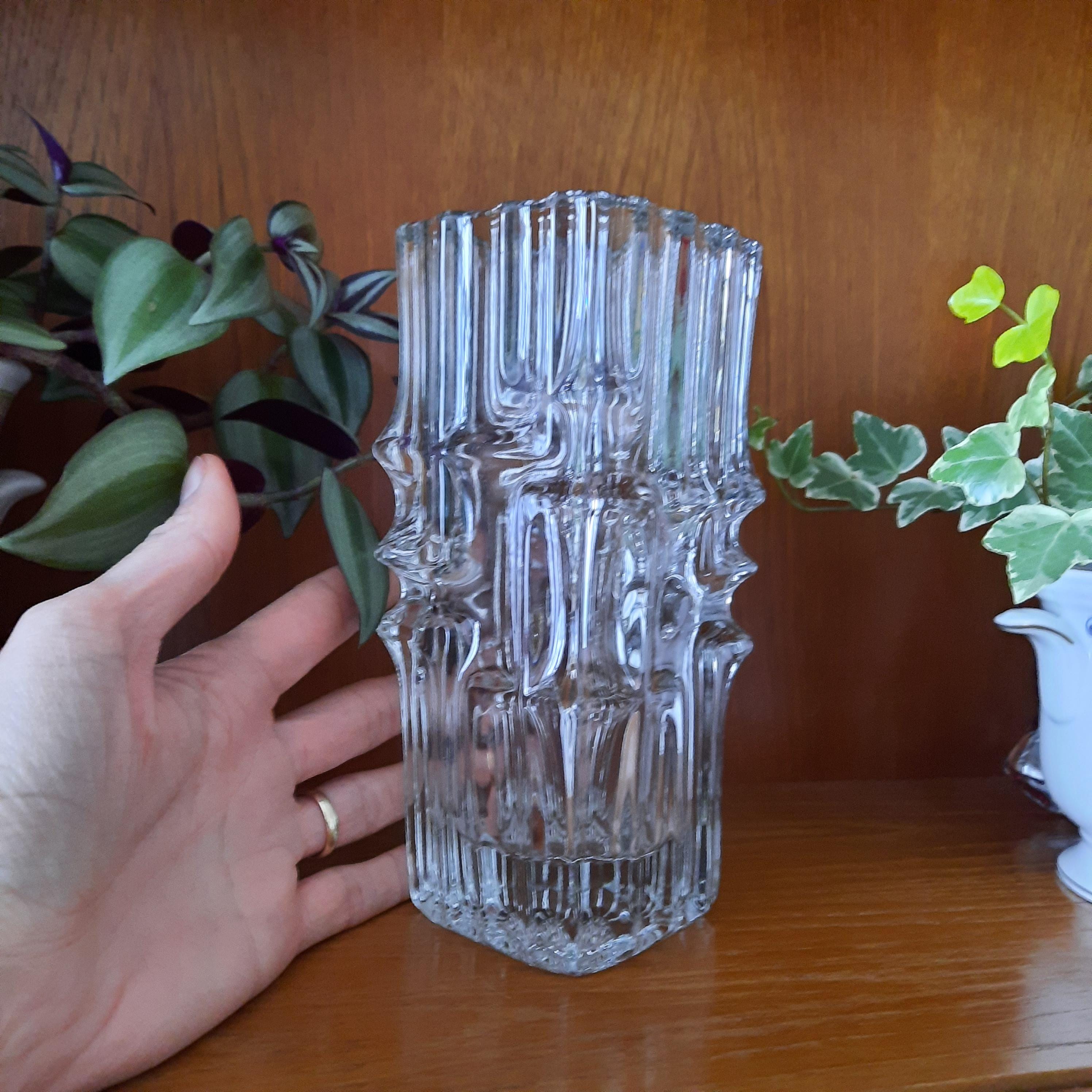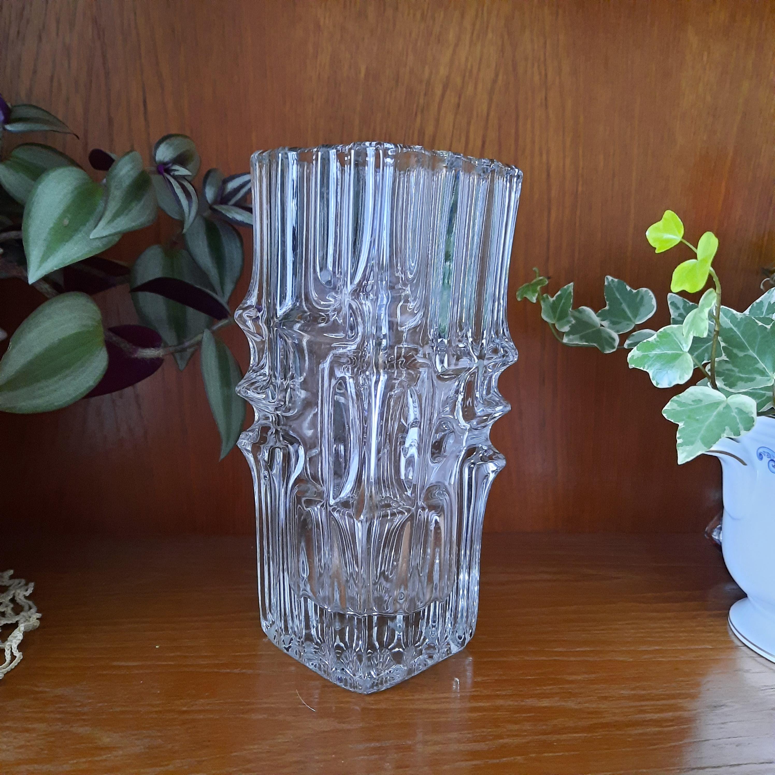 Made of heavy pressed glass vase and produced by Sklo Union in 1968.