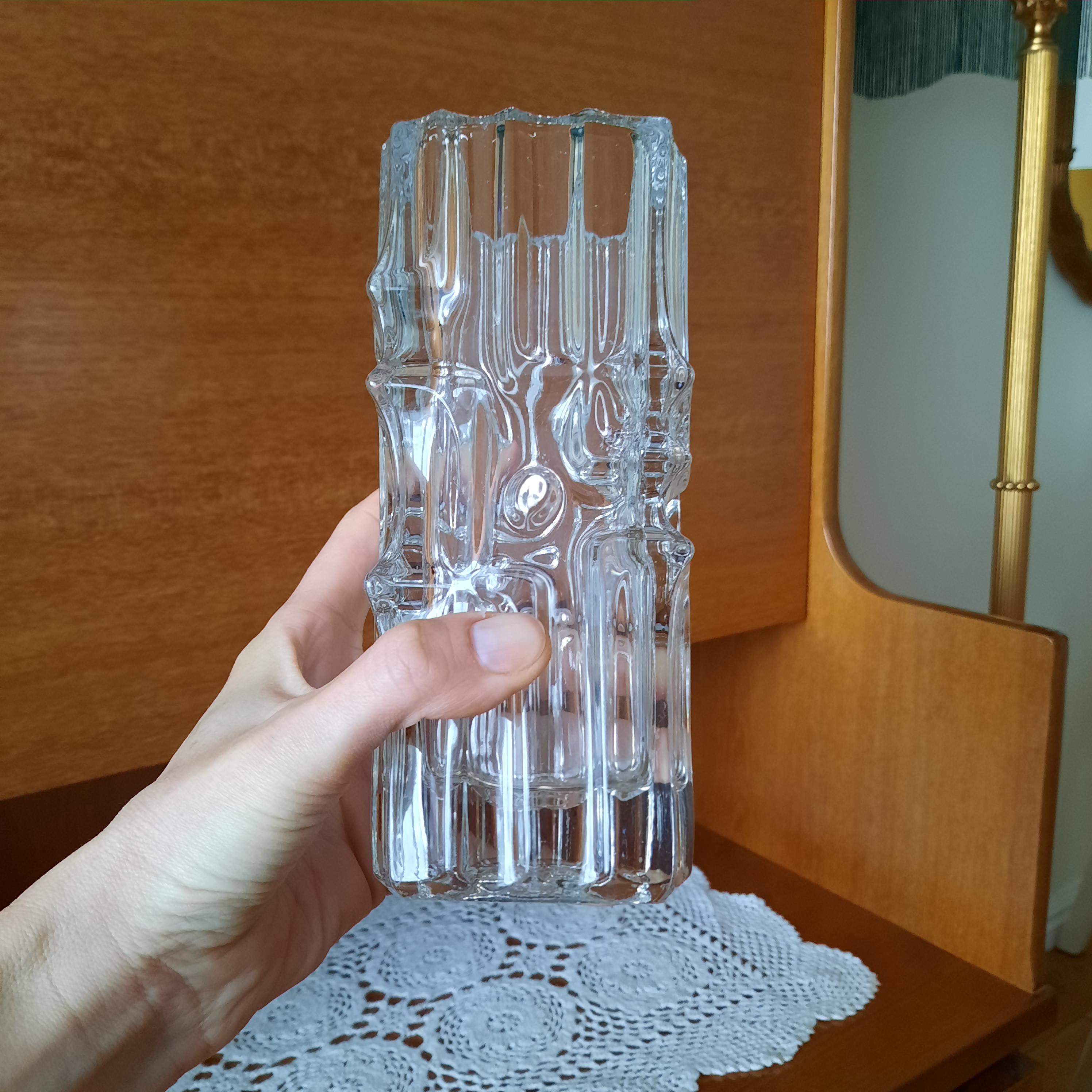 The pattern id called Ice melting vase number 617 and designed by Vladislav Urban for Rosice glass in Czechoslovakia in 1968