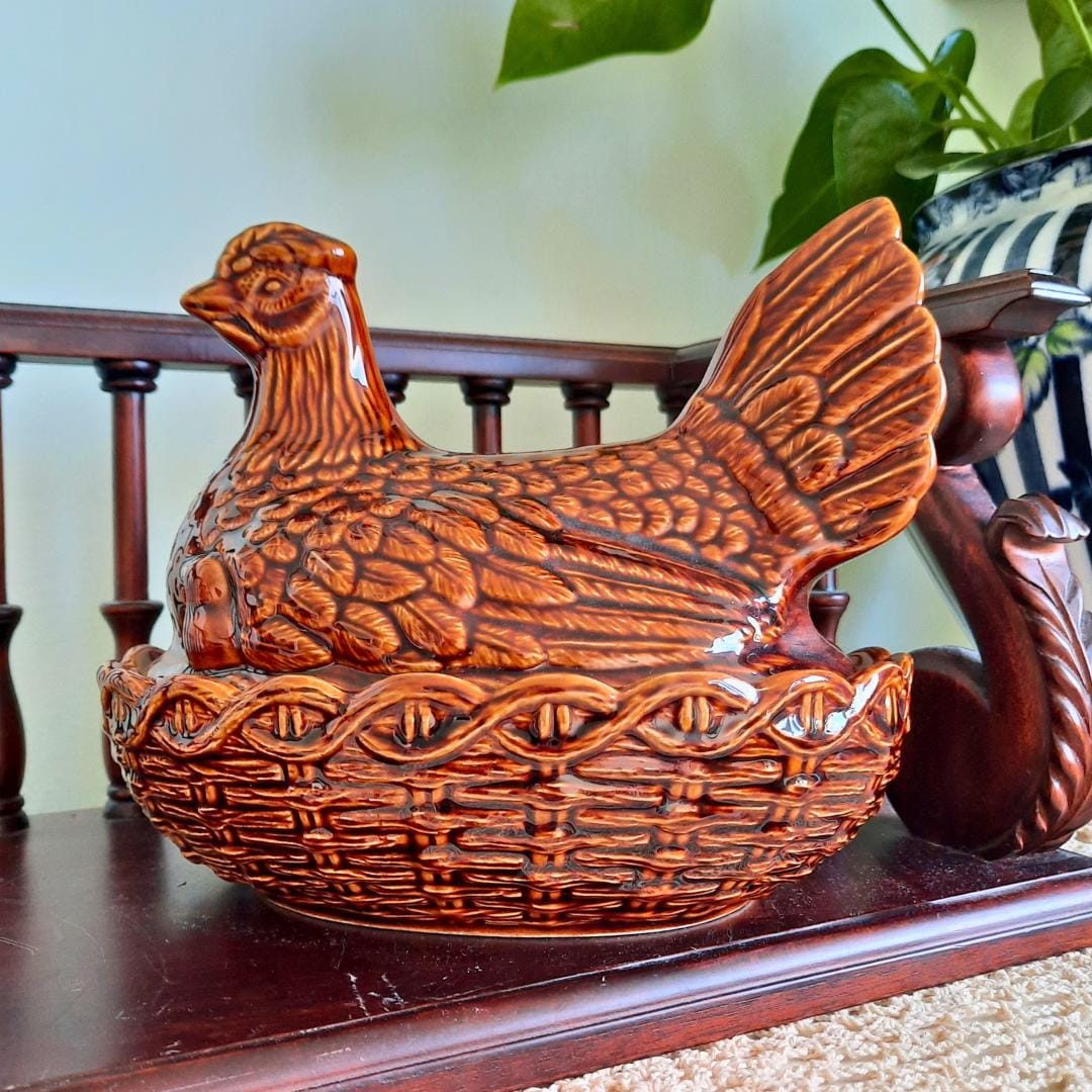 Mid Century Portmeirion Ceramic Hen Egg Basket Holder Made in England N 3.Retro Kitchen Storage, Hen Crock