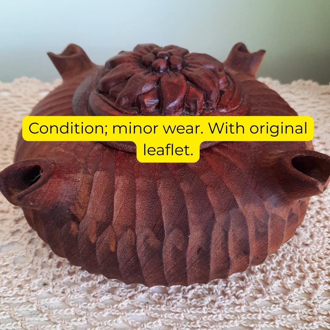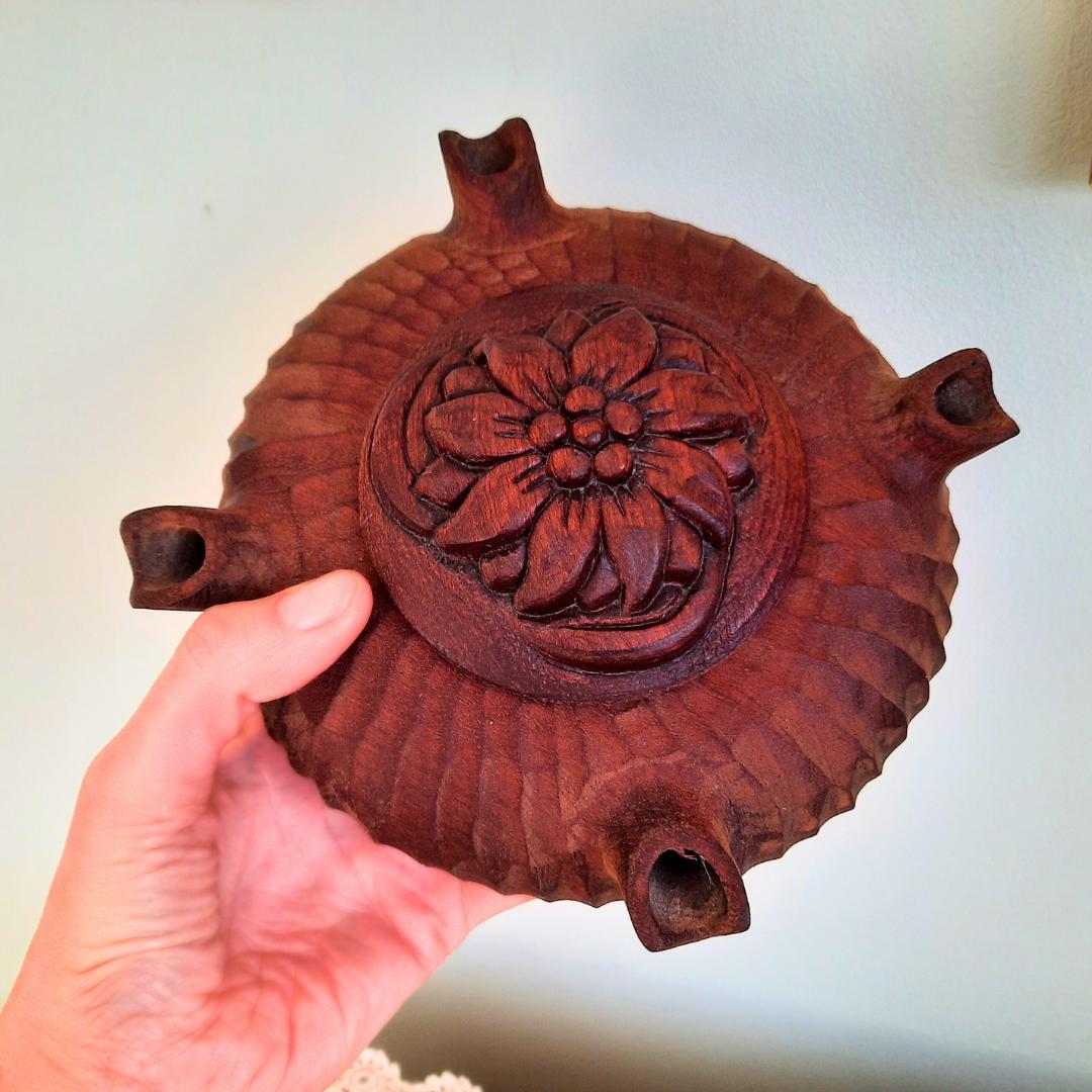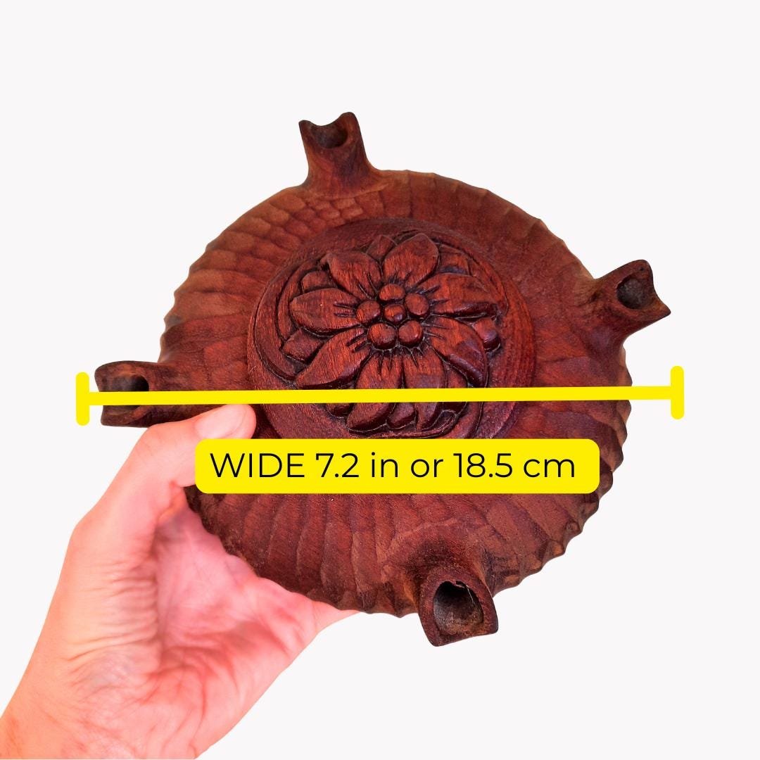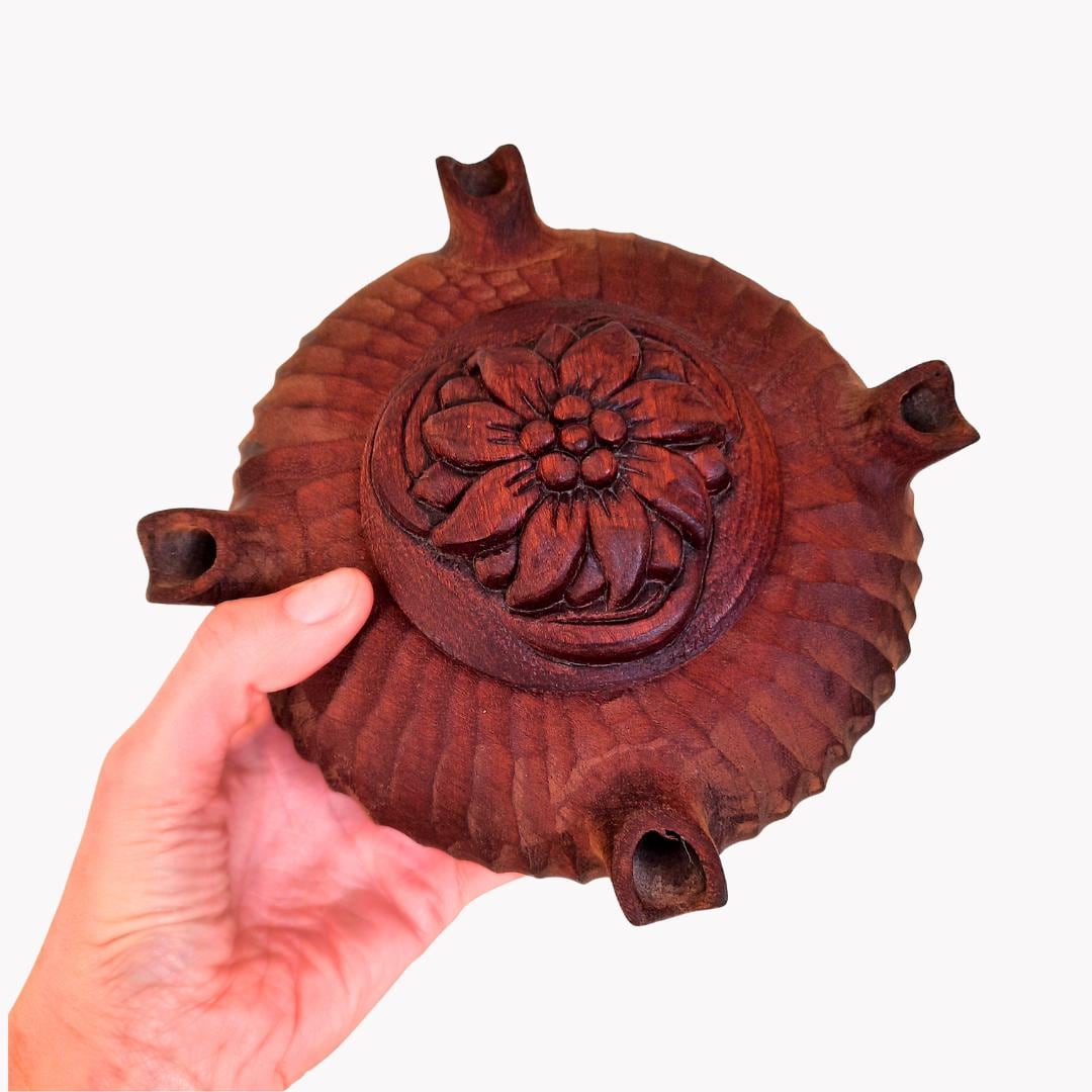 Vintage French Rustic Hand-Carved Flower Wooden Grolla Or Friendship Cup 7.2'' wide Original Leaflet