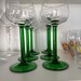 Mid Century Set of 6 Luminarc small wine glasses with green straight stem.