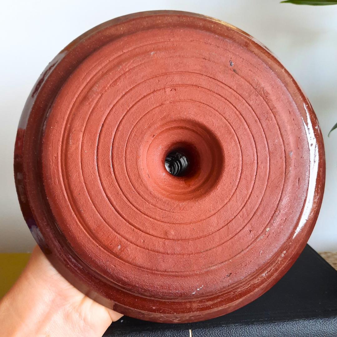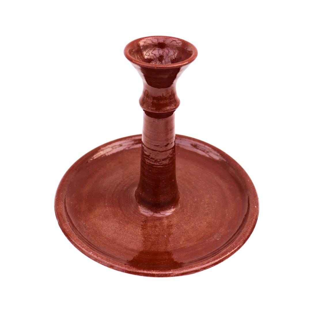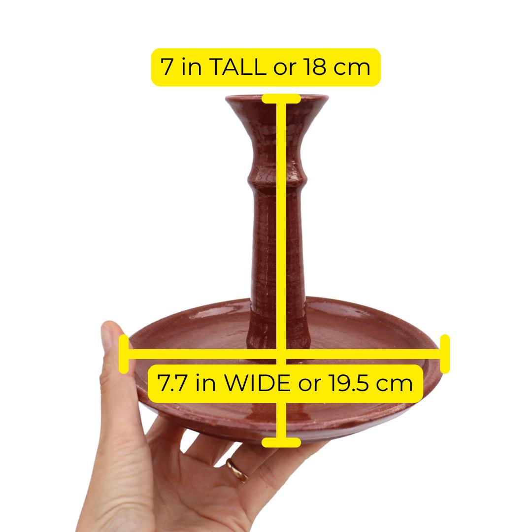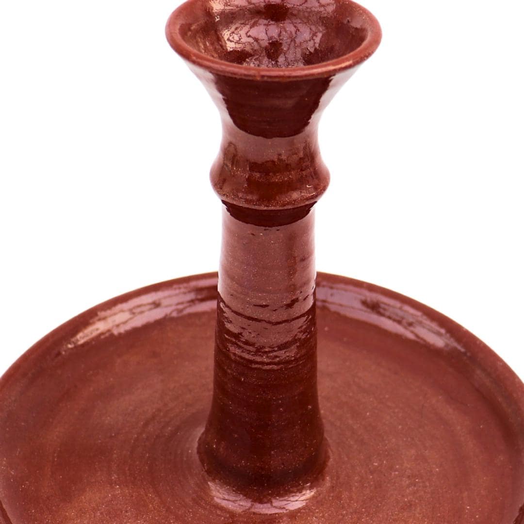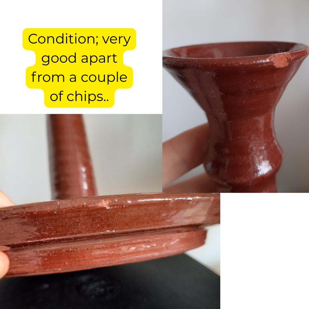 Vintage Large Dark Brown Rustic Studio Pottery Candleholder With Wide Flat Base