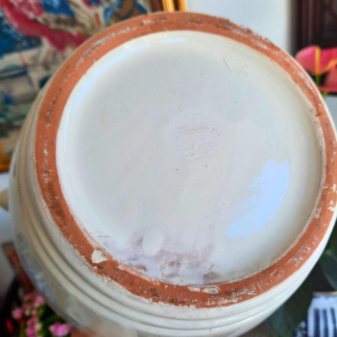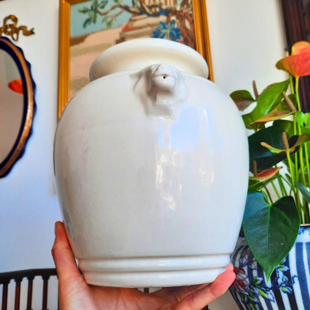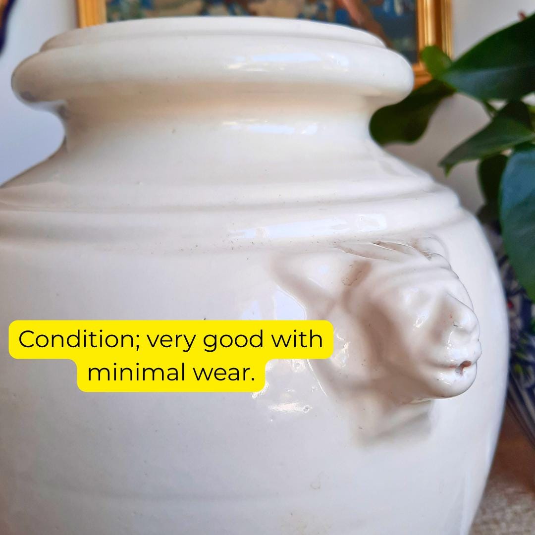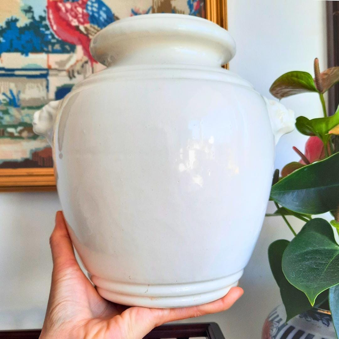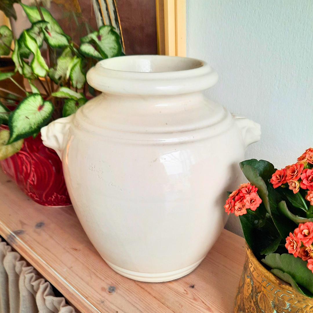Large Vintage French Provincial Off White Glazed Earthenware Confit Pot