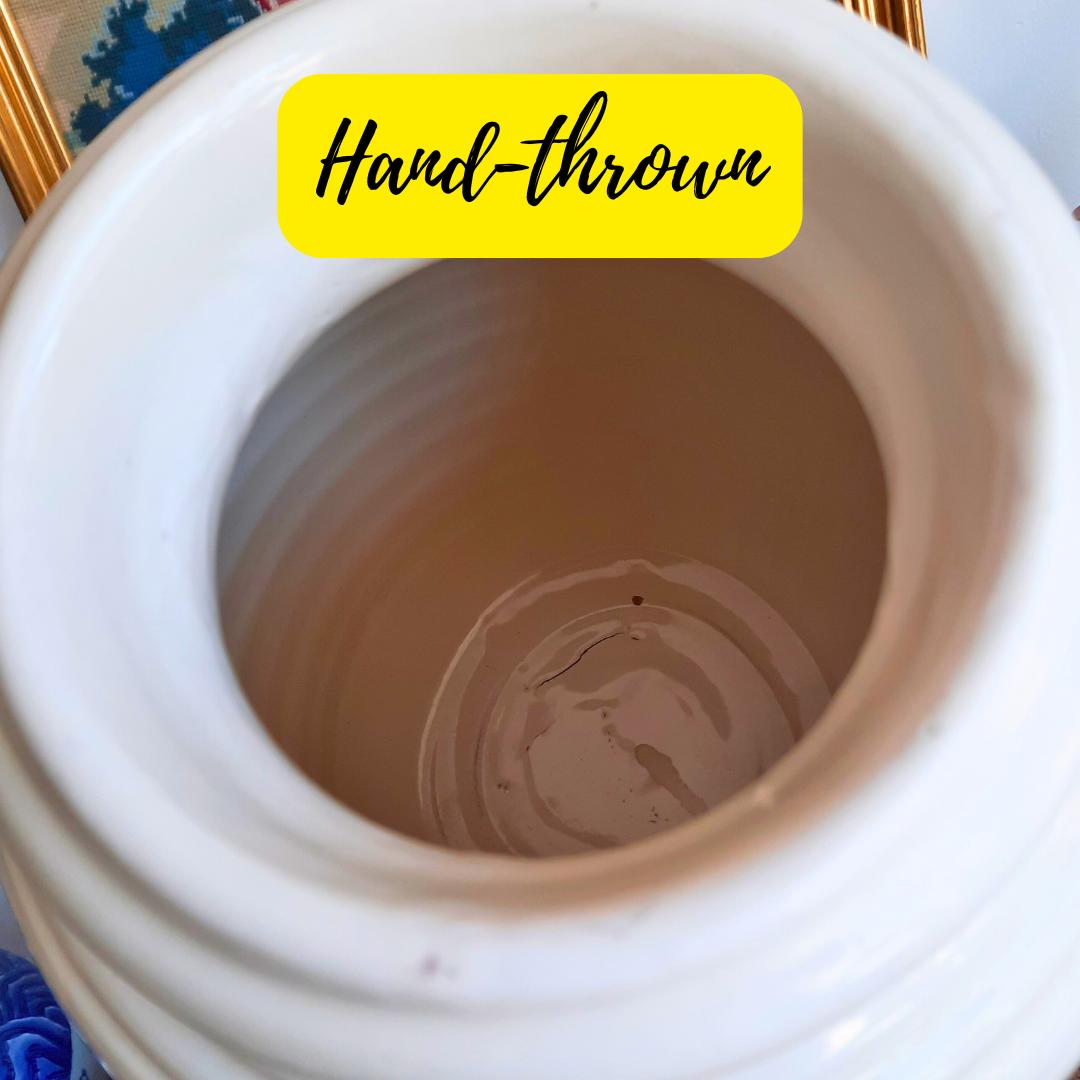 The pot is in lovely condition. Hand-thrown, so small imperfections on the glaze as it's normal.