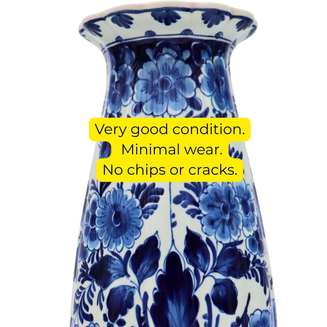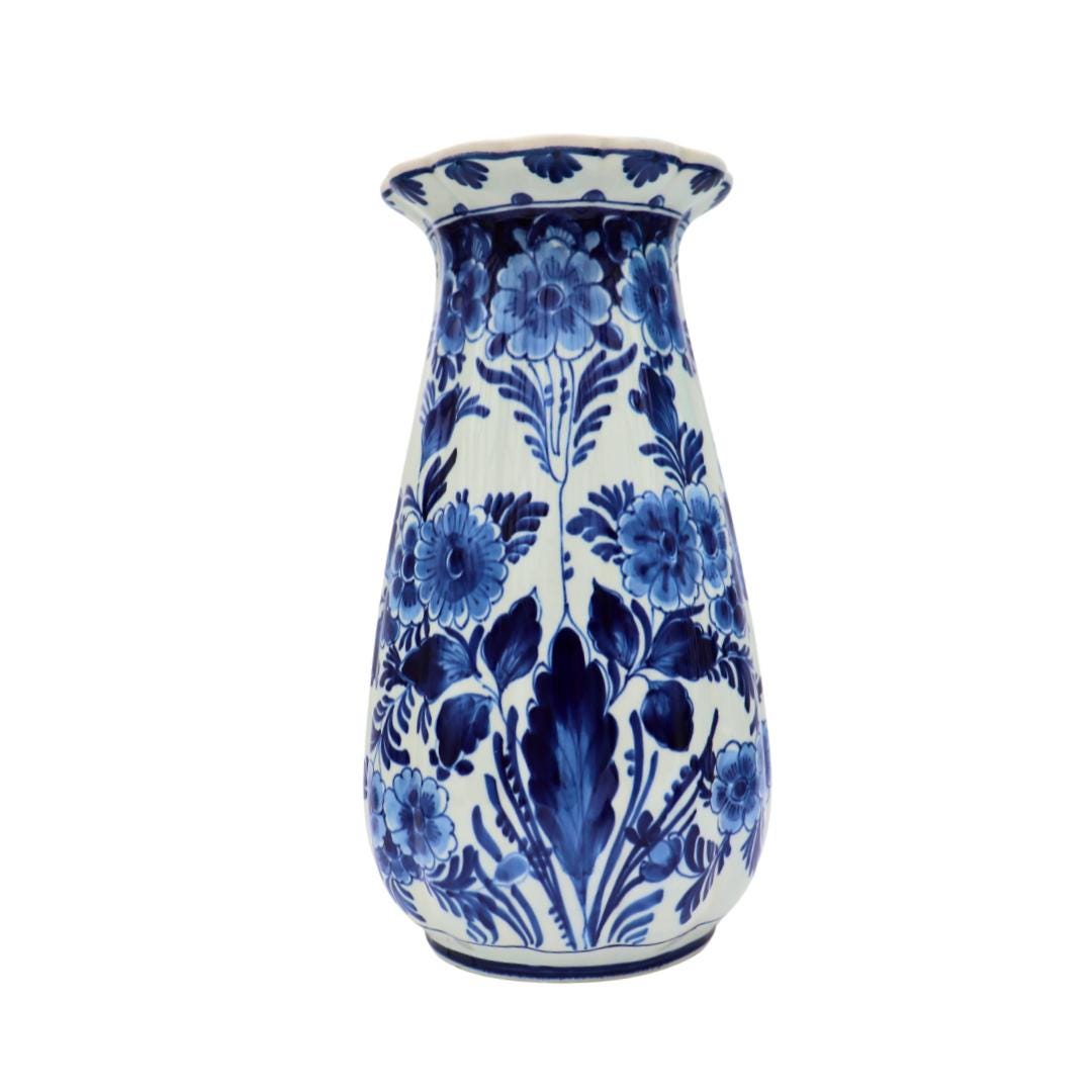 Vintage Royal Delft Blue And White Vase 1970's With Hand painted Floral Decoration H 22.5 cm Excellent Condition
