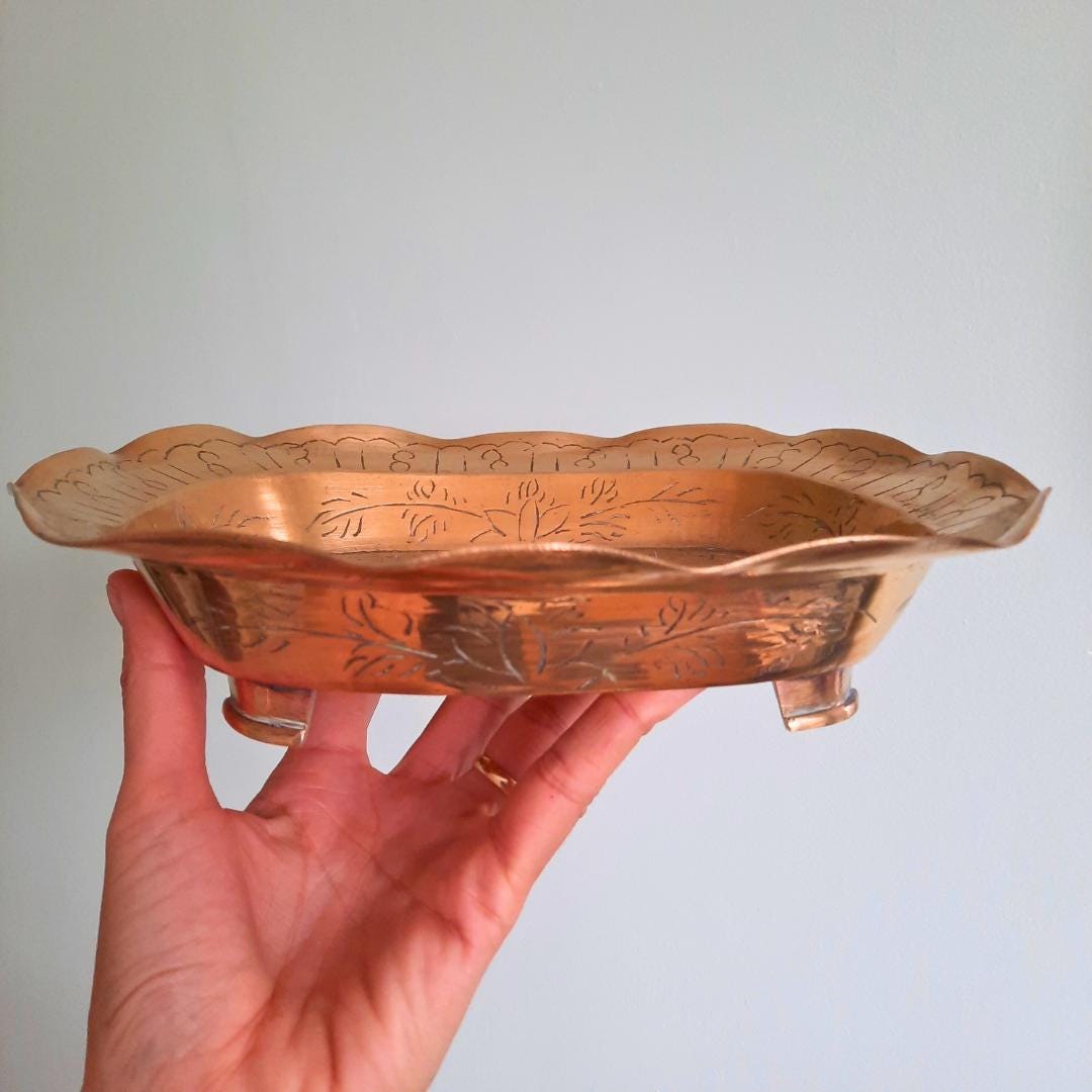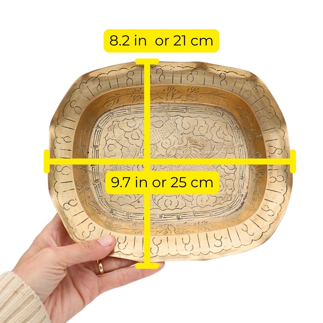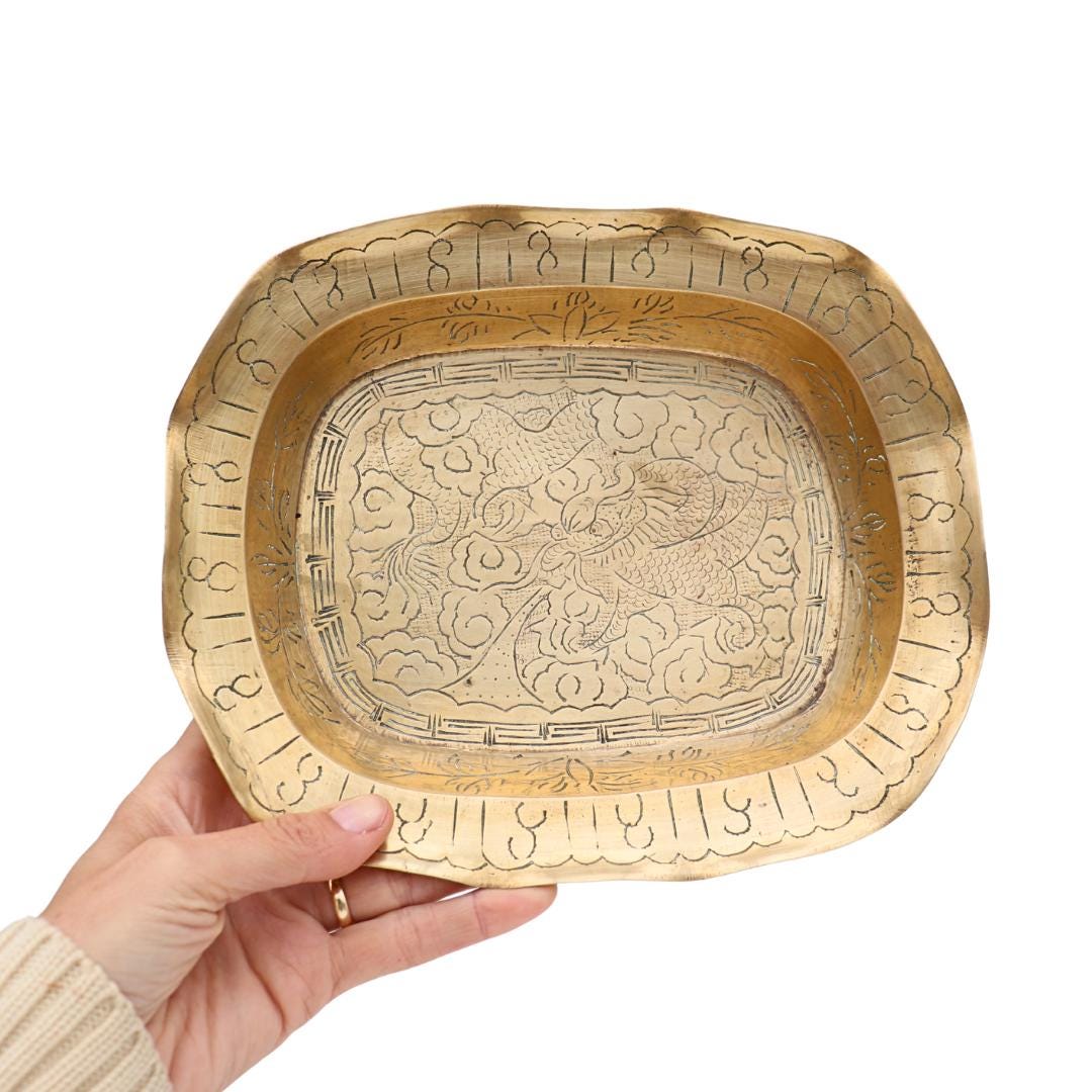 This beautiful footed brass bowl with a ruffled edge and dragon chasing pearl decoration will look fabulous in any corner of your home; it could be used as a small fruit bowl or decorative accent on a coffee table. Also, it will make a wonderful gift for the home that will be treasured forever!