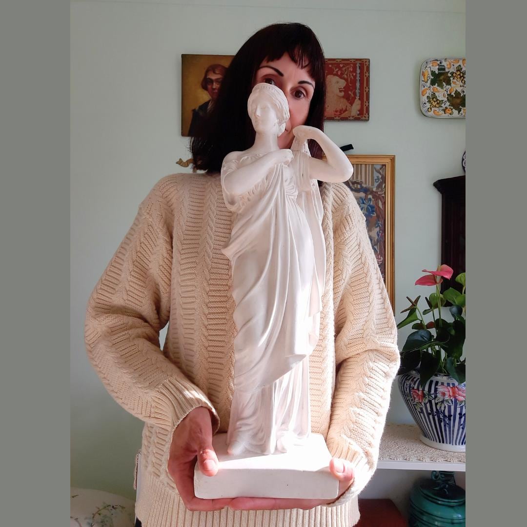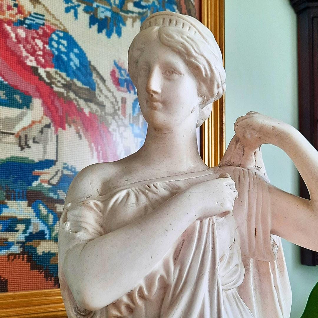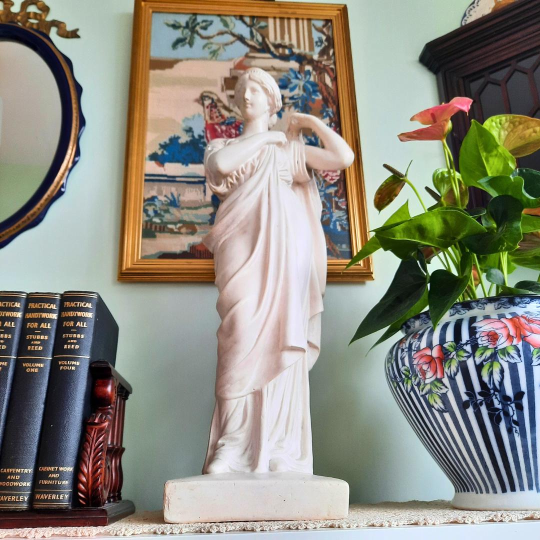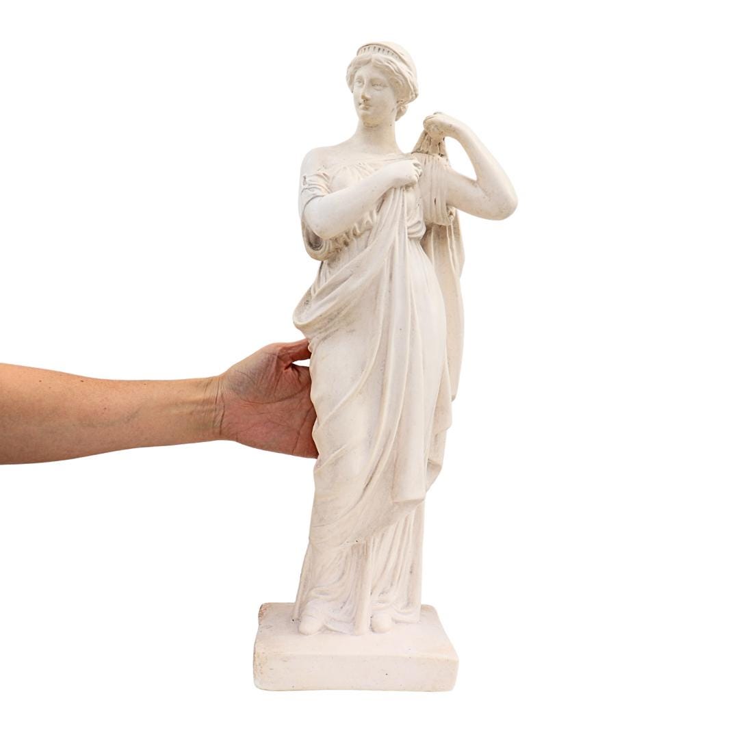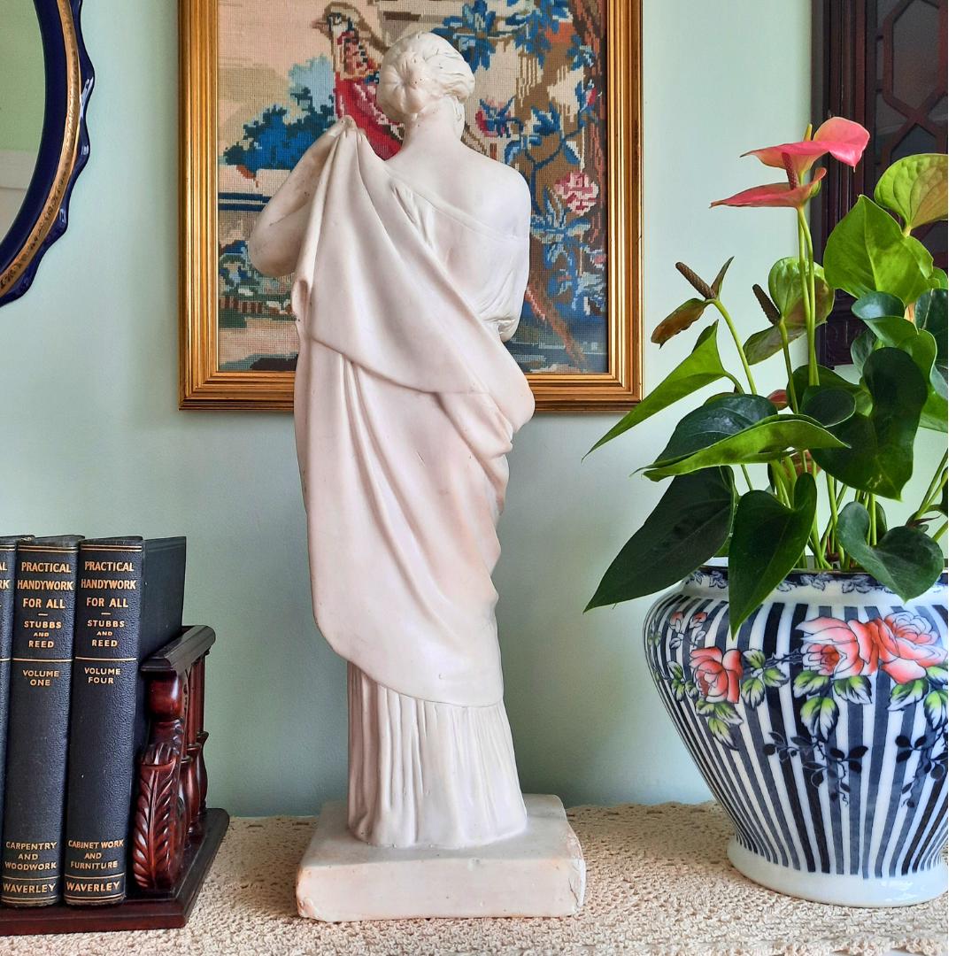 Large Antique Plaster Cast Tanagra Lady Arranging Garments 19th Century Museum Replica, Academia decor.