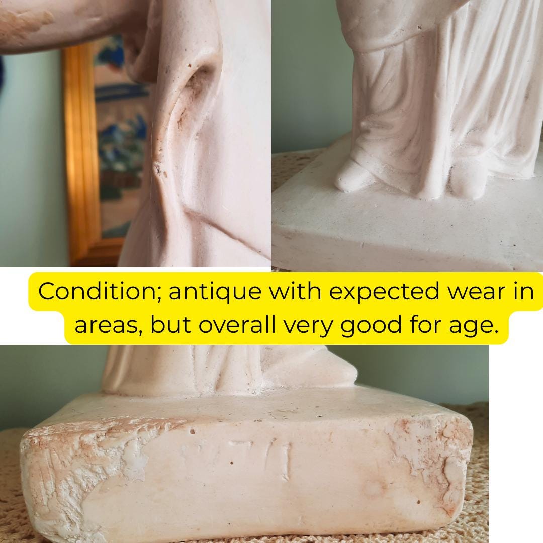 The plaster shows some wear as you'd expect in an antique piece, but is very well preserved for age and in one piece, apart from a couple of small nicks here and there.