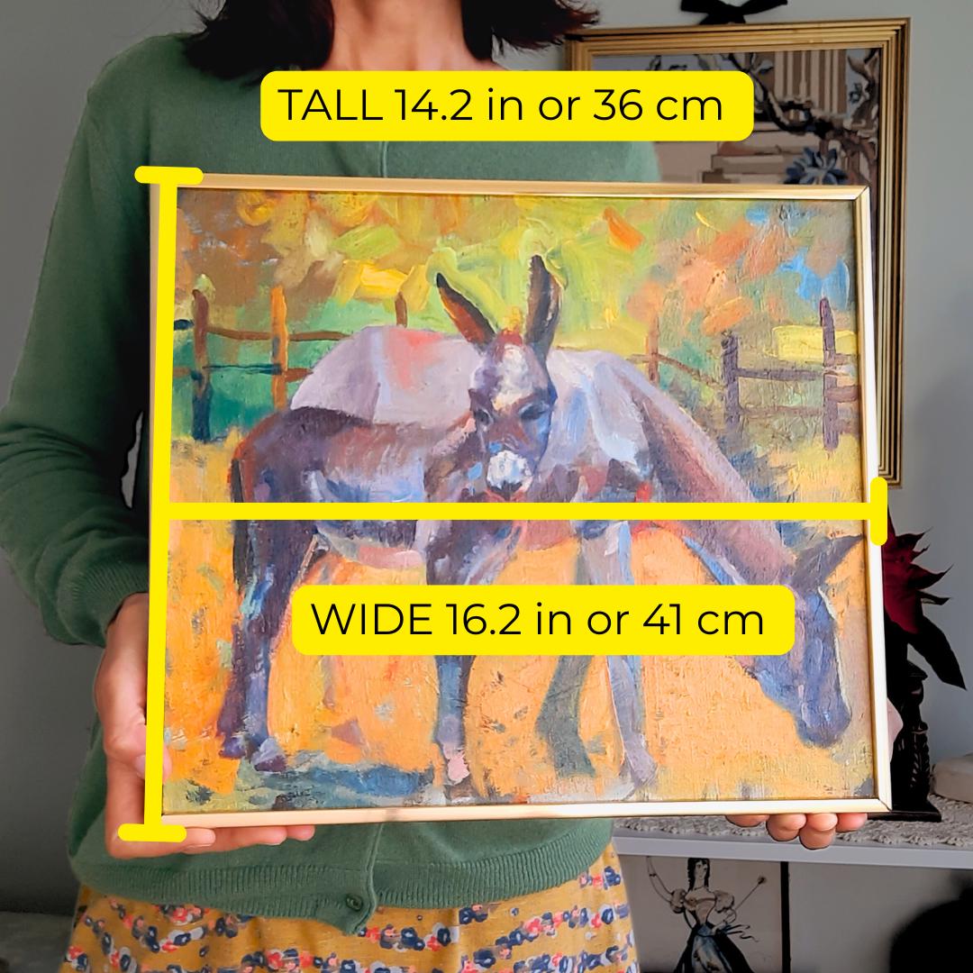 Vintage Impressionist Impasto Oil Painting Of Two Donkeys Grazing Framed By William Wright