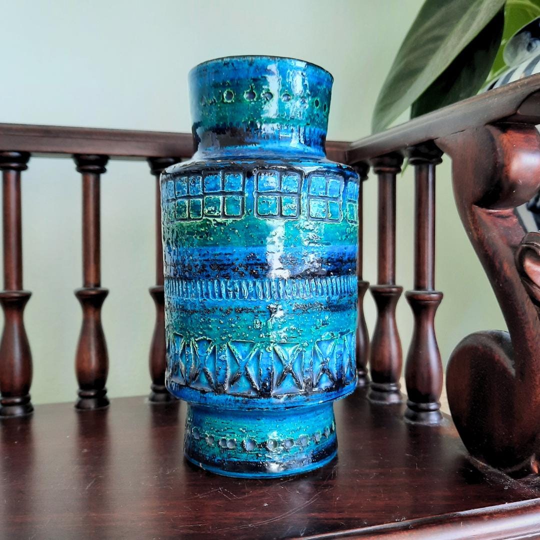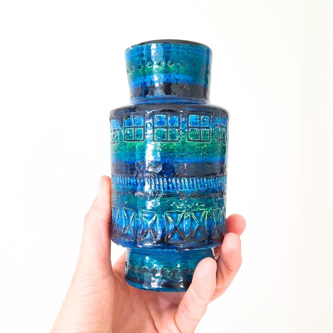 Small MCM Italian Bitossi Vase Rimini Blue Pattern 724 Designed By Aldo Londi