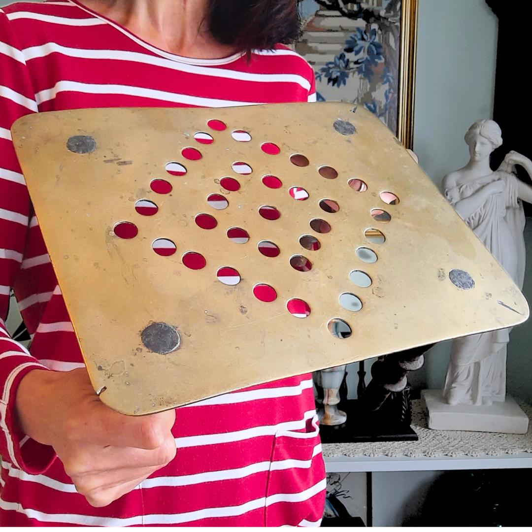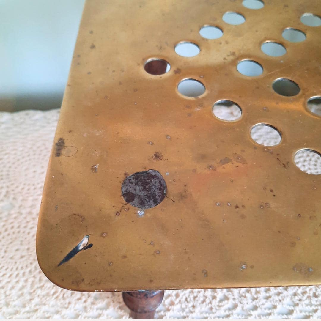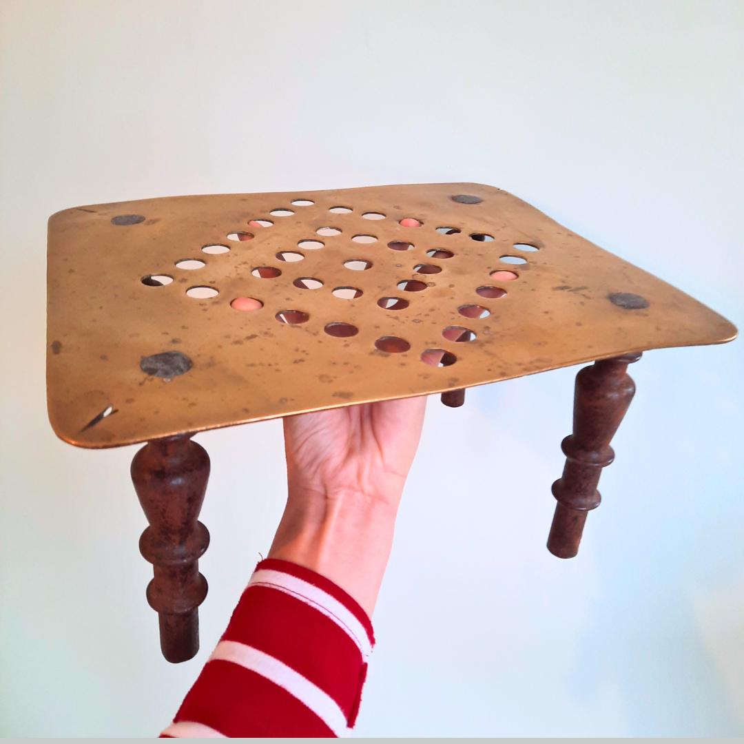 Large Chunky Antique English Brass And Cast Iron Fireplace Trivet - Victorian Foot Stool Plant Stand