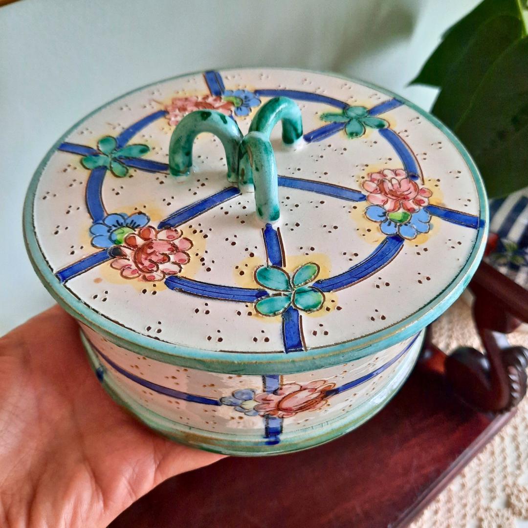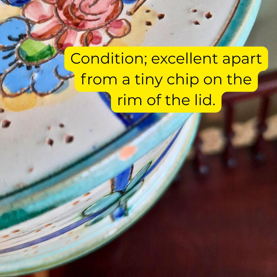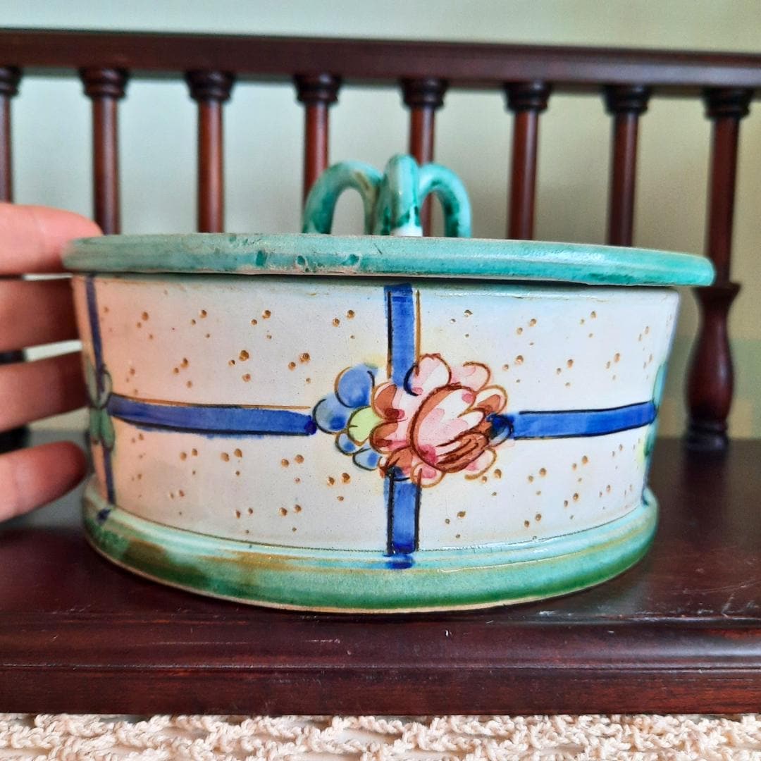 Vintage Made In Italy Studio Pottery Lidded Box Floral Sgraffito Decoration