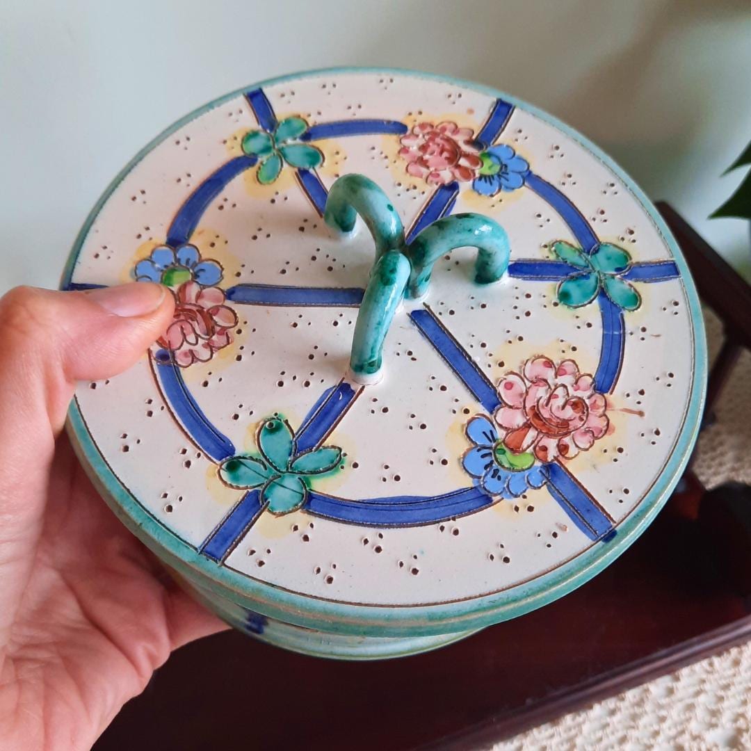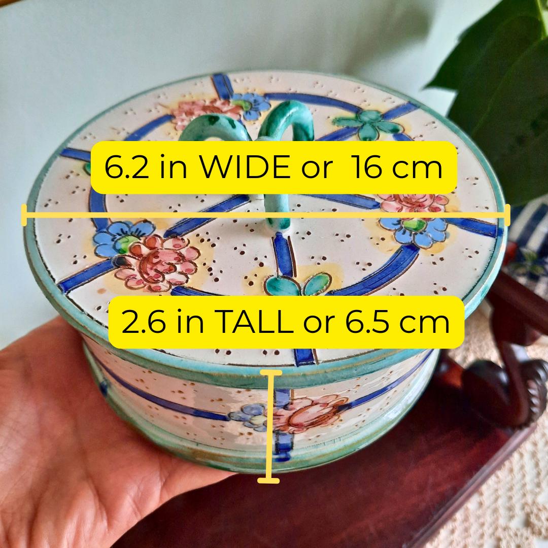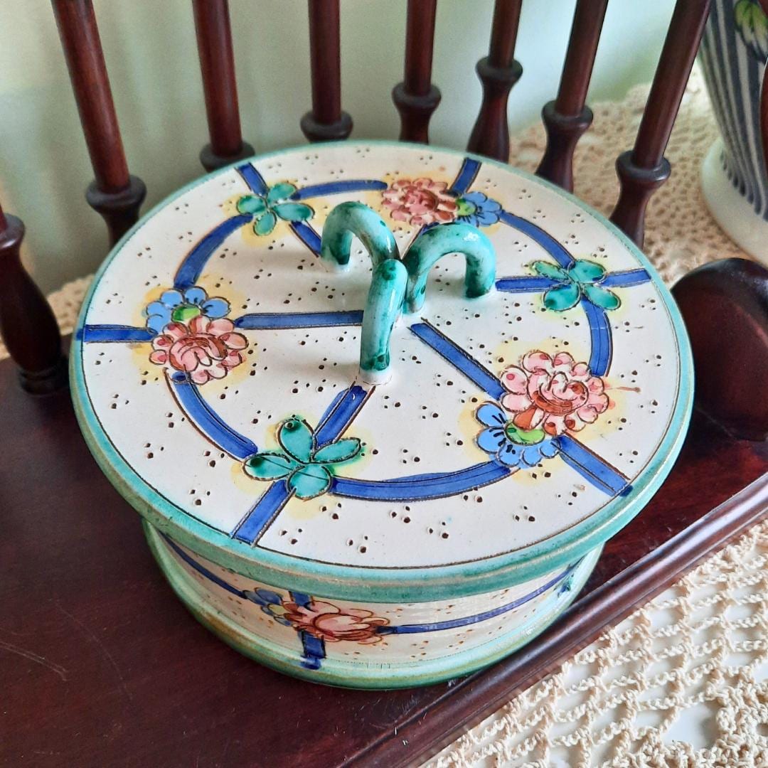 Vintage Made In Italy Studio Pottery Lidded Box Floral Sgraffito Decoration
