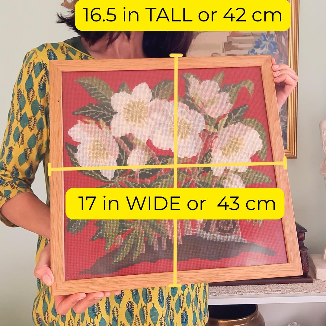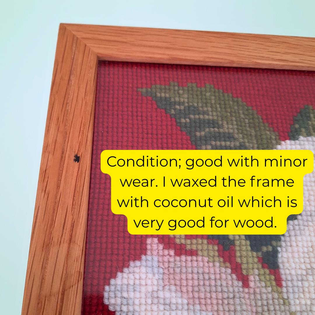 Vintage Oak Wooden Framed Elizabeth Bradley Christmas Rose Needlepoint