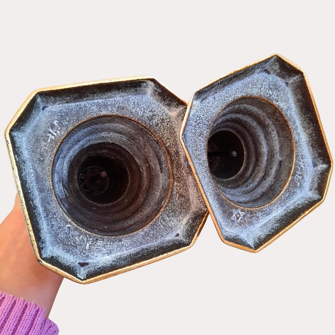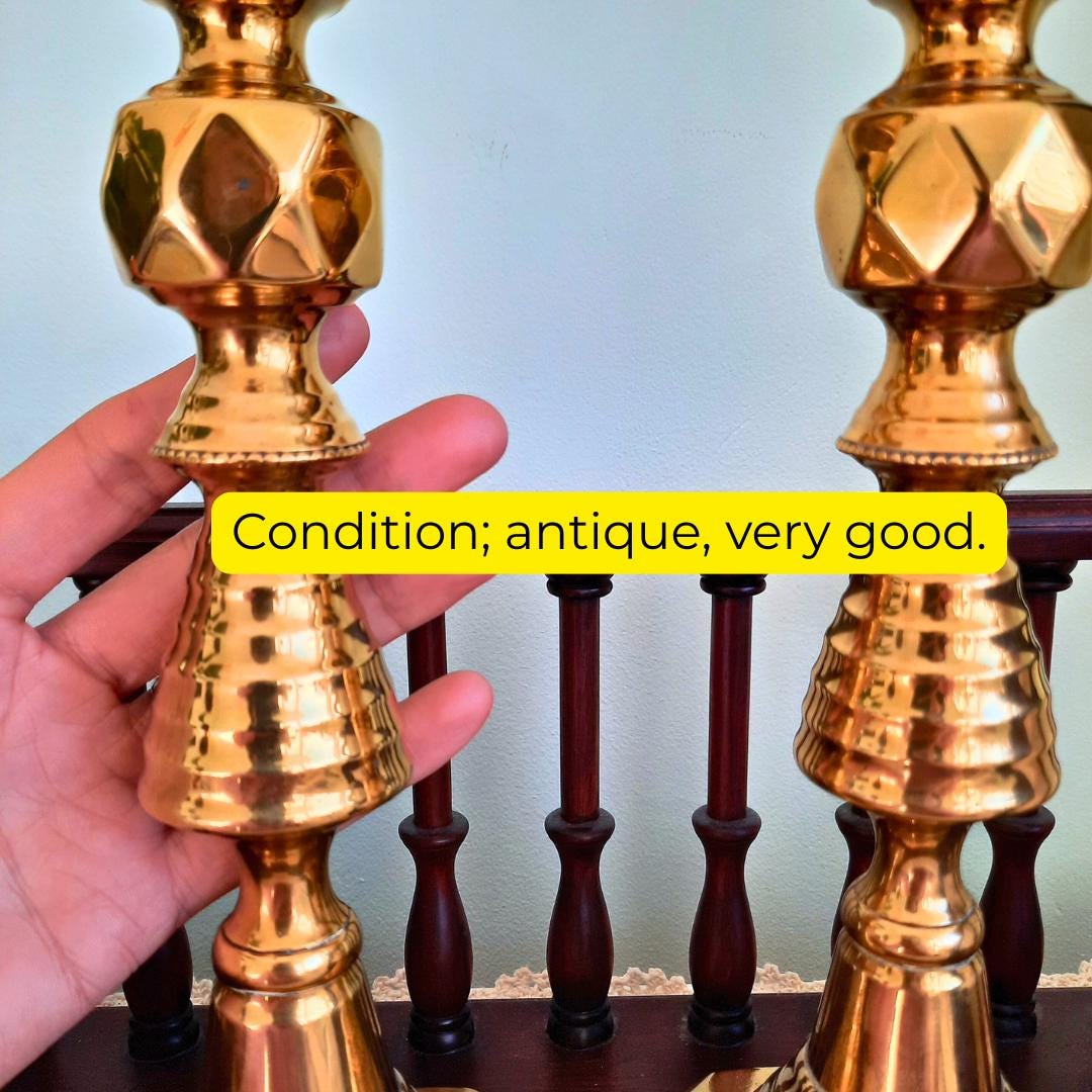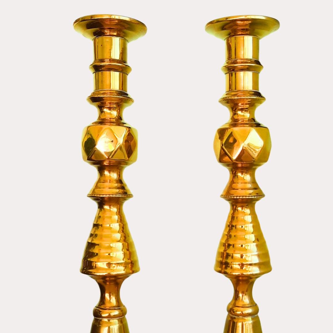 Large Pair Of King Of Diamonds Brass Candlesticks Pair H 11.7'', Antique Tall Brass Candleholders