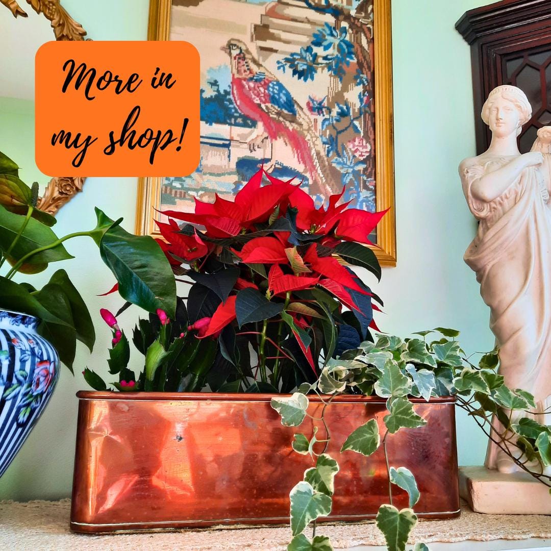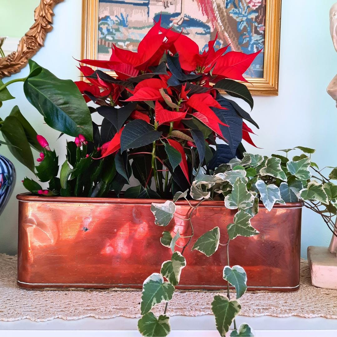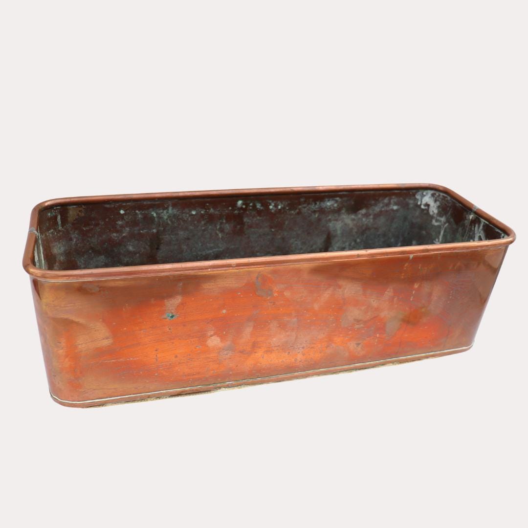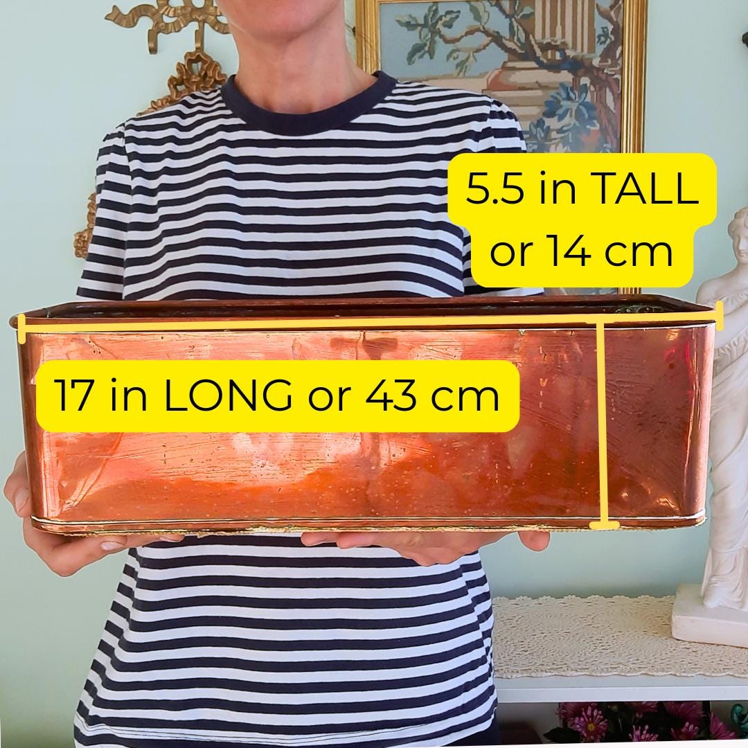 Large Vintage Rectangular Windowsill Copper Planter Cachepot 17'' Long