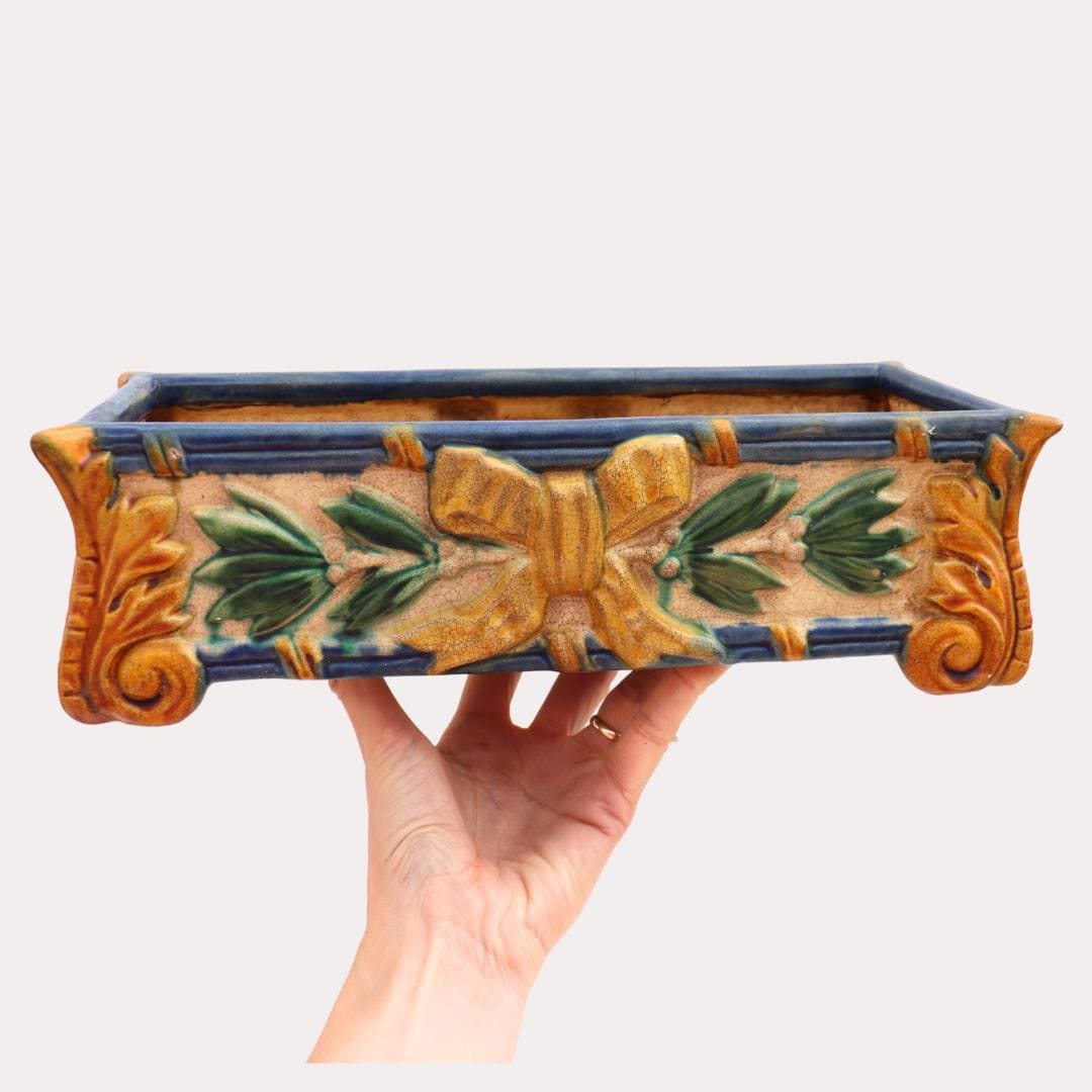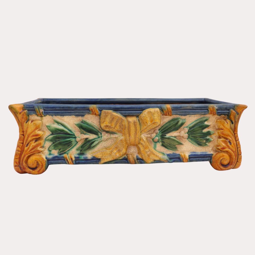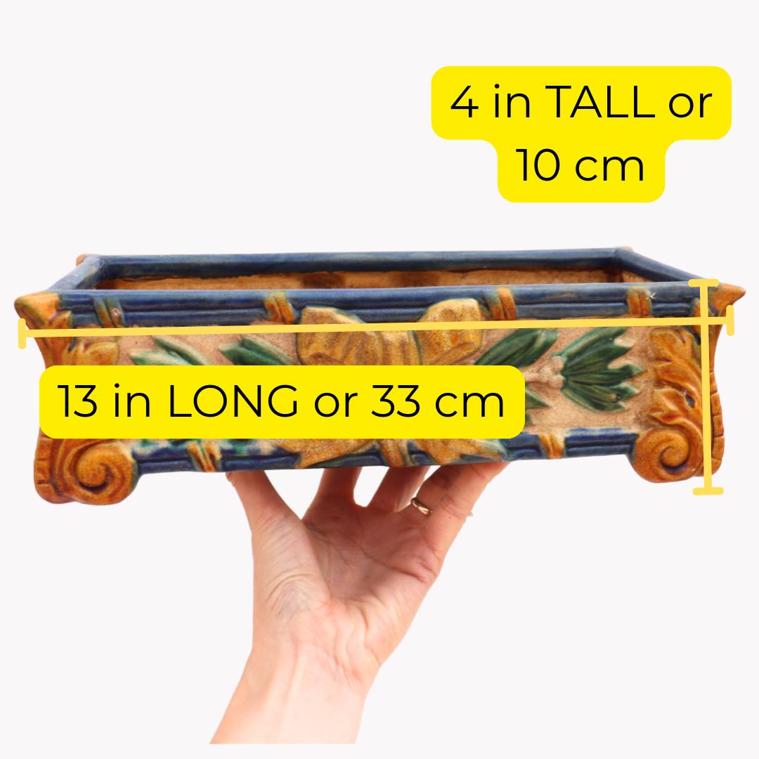 Art Nouveau Style Rectangular Ceramic Windowsill Planter Cachepot 13'' Long C 1970's.