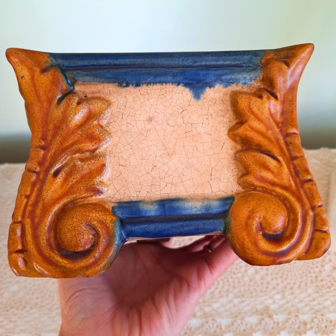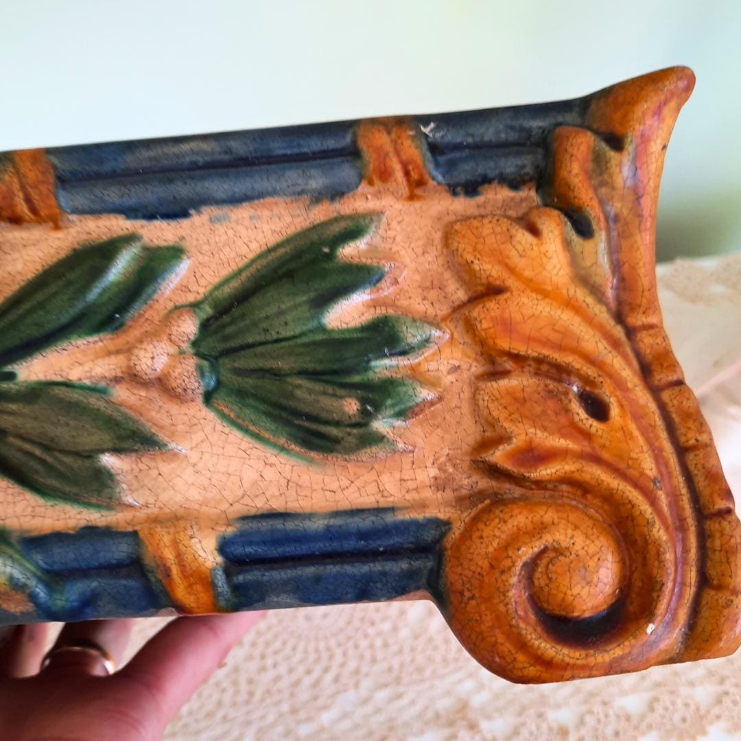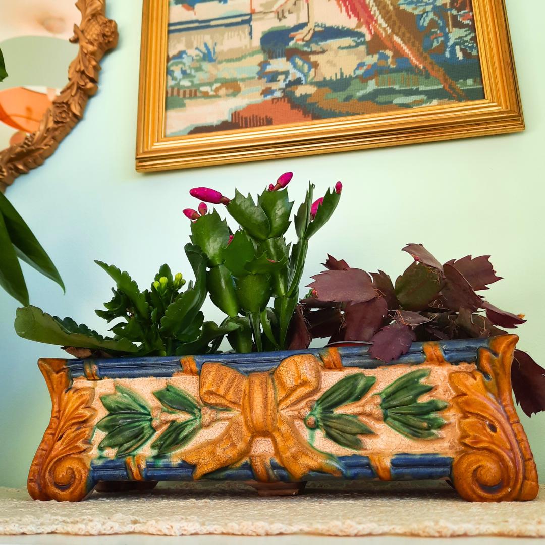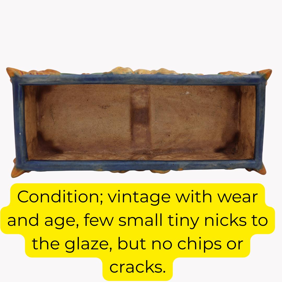 Art Nouveau Style Rectangular Ceramic Windowsill Planter Cachepot 13'' Long C 1970's.