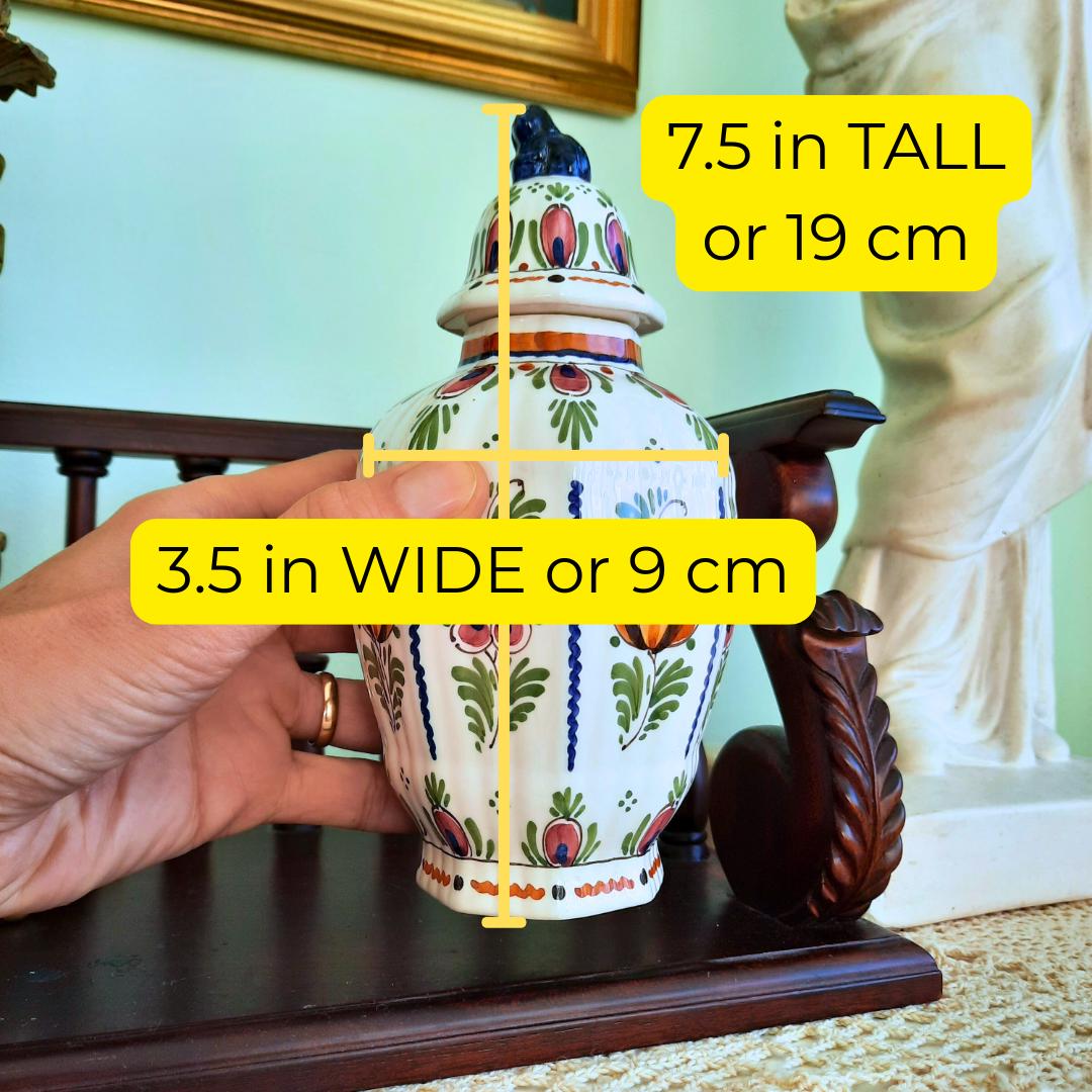 Small Hand Painted Polychrome Delft Ginger Jar With Floral Decoration H 7.5 ''