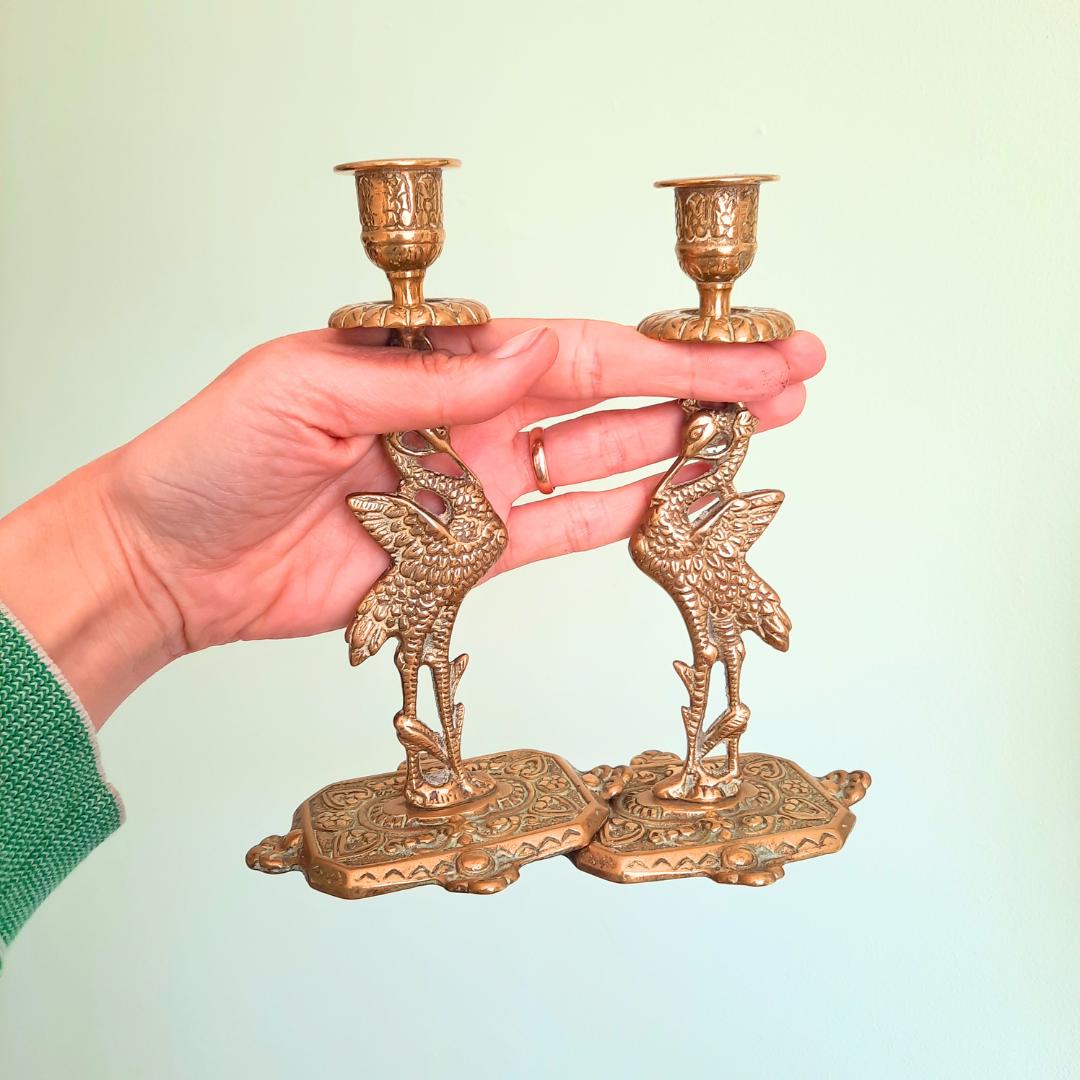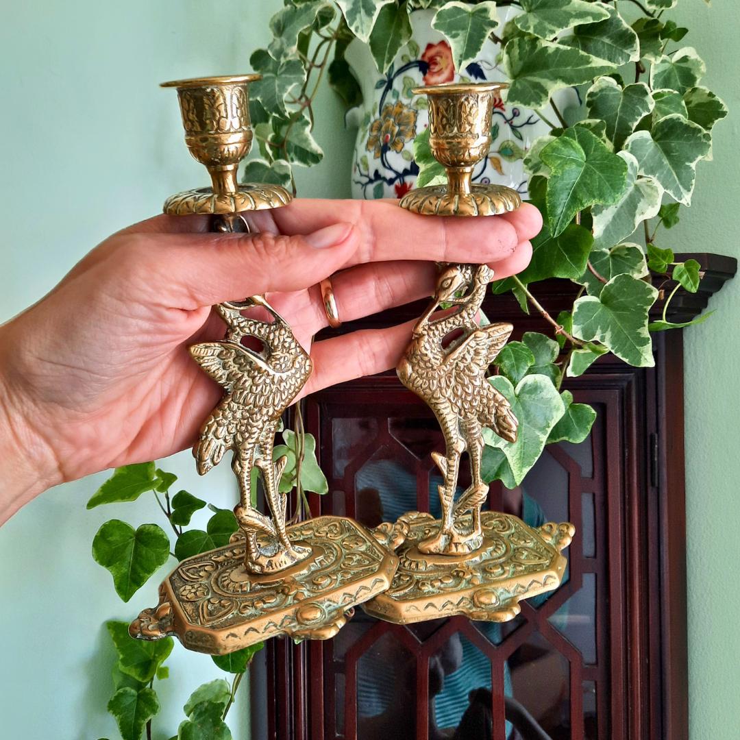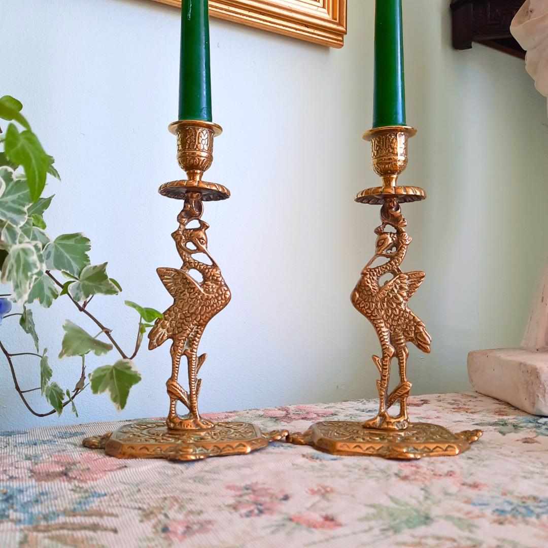 Beautiful pair of truly antique Victorian Heron or Crane Birds Candleholders with ornate rectangular bases and just beautiful! These ill look fab in any quality interior and will make a superb gift for the home that will be treasured forever!