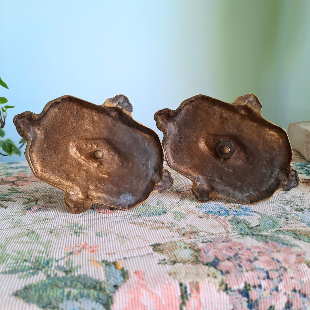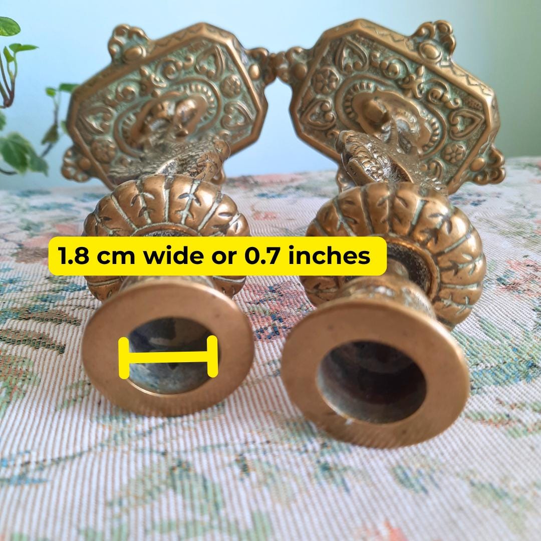 Antique Victorian Brass Heron Birds Candleholders Pair .