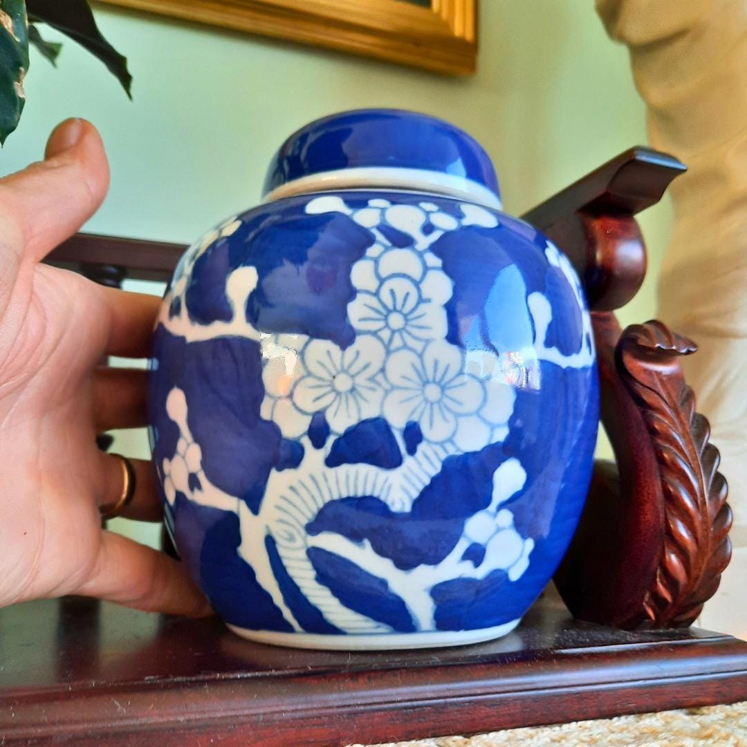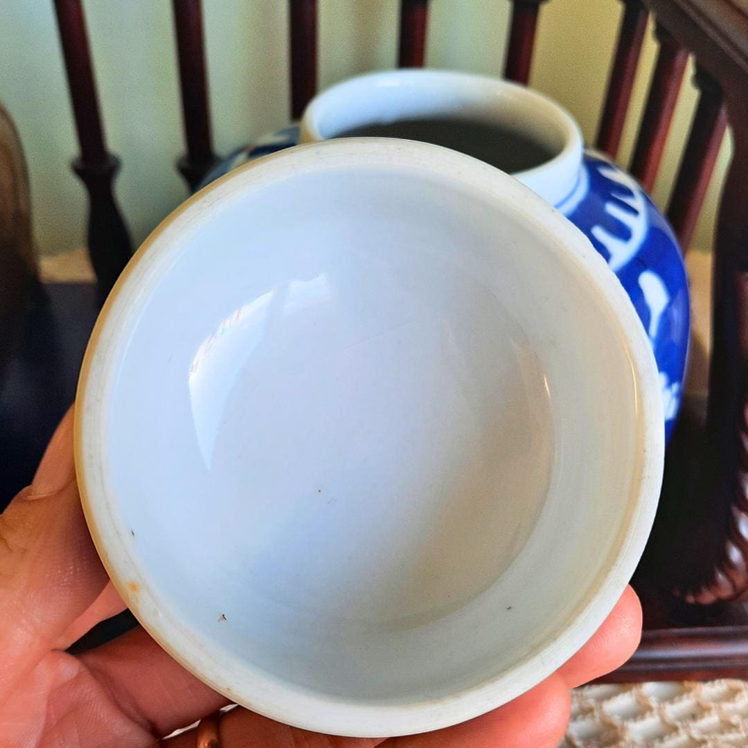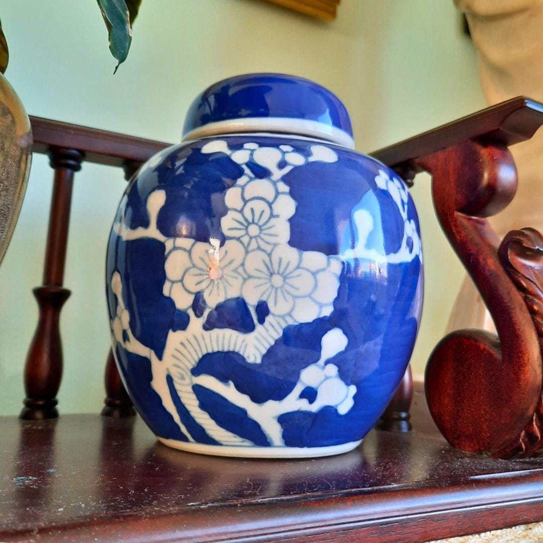 Vintage Blue and White Prunus Pattern Ginger Jar H 6.2'