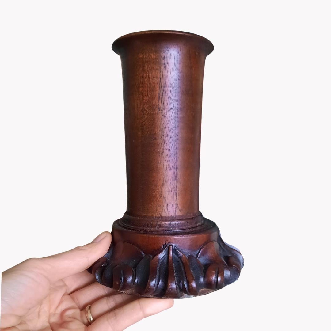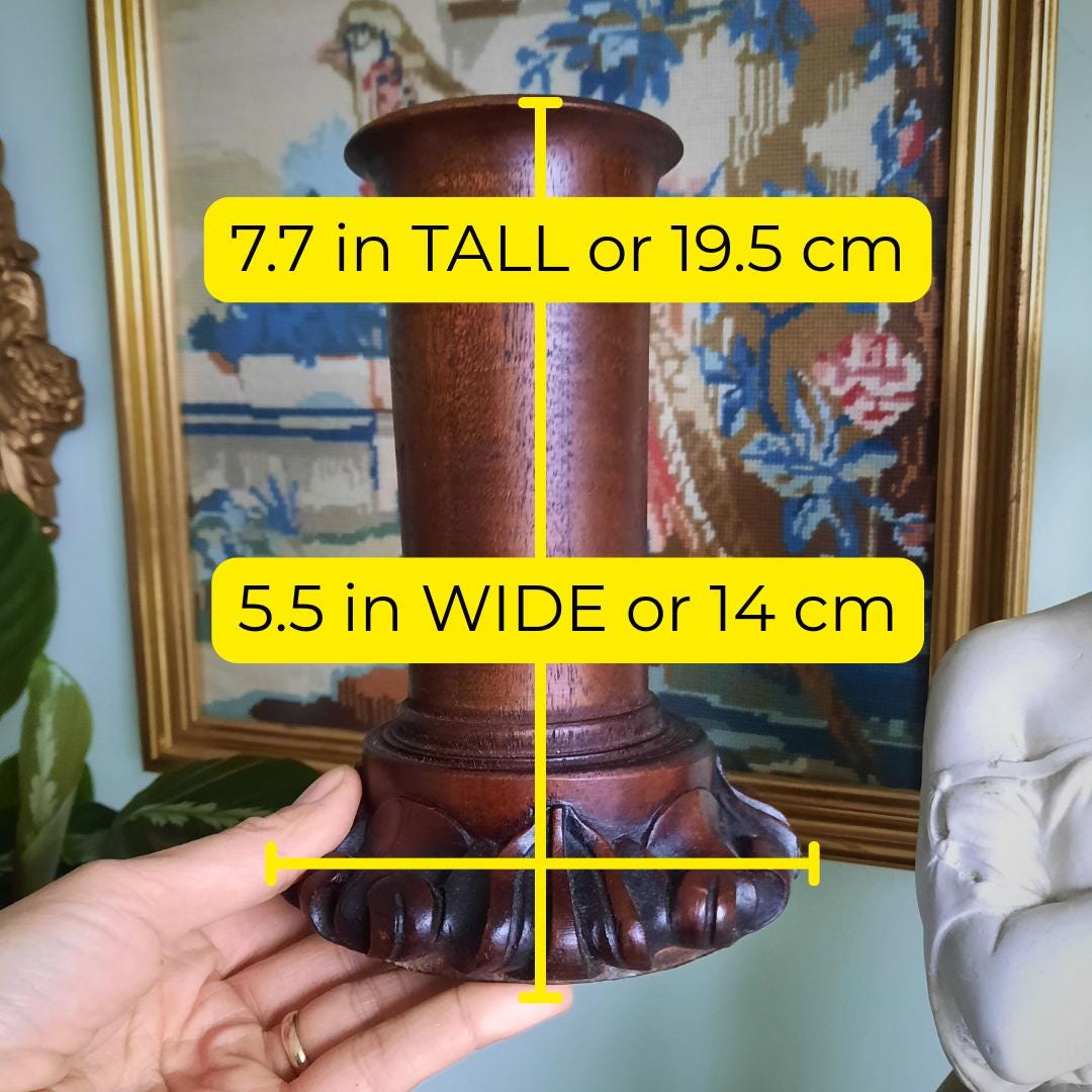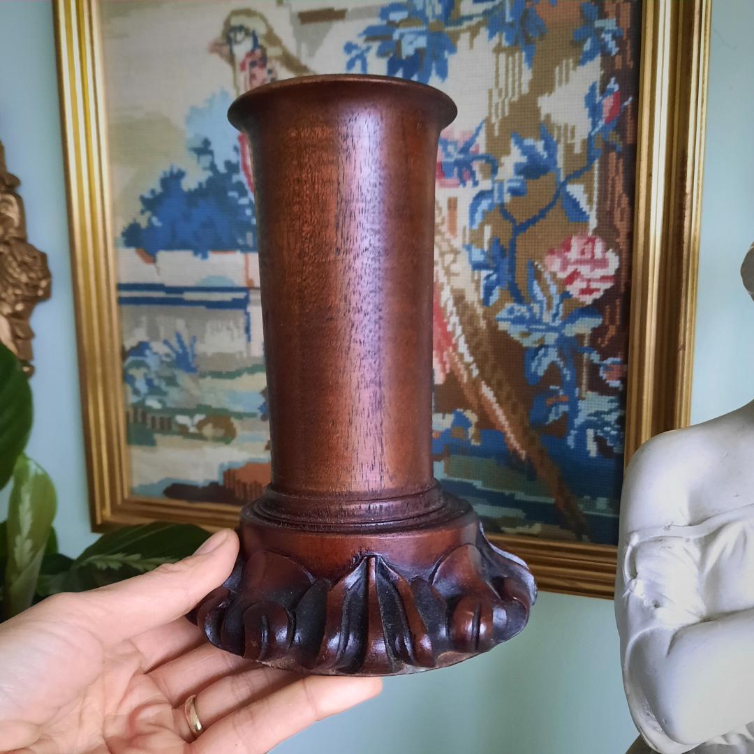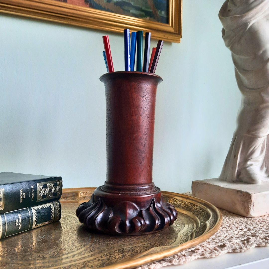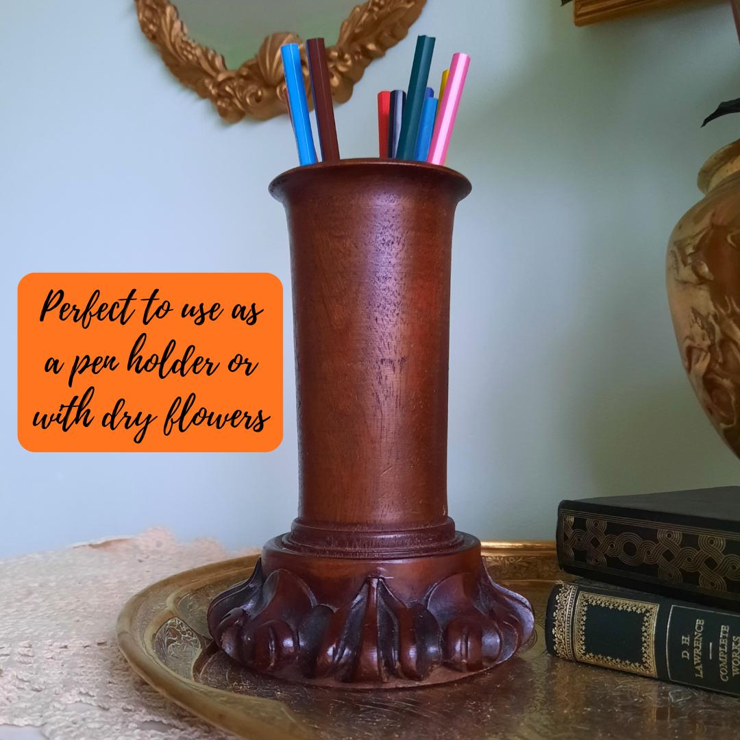 This beautiful dark wood vase is perfect to use as a unique and stylish pen-holder or with dry flowers. C late 1800's. Imagine this on your desk, it's way more beautiful that a regular boring and mass produced pen holder, don't you think? Also will make a lovely gift that will be treasured forever!
