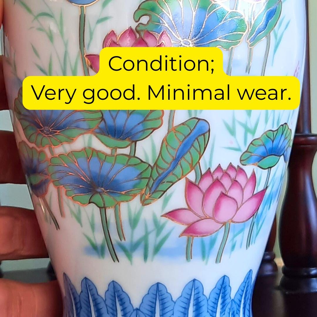 This gorgeous vase will make a wonderful addition to any quality interior and an amazing gift for the home. Delicately hand-painted by Japanese master artisans with lotus flowers.