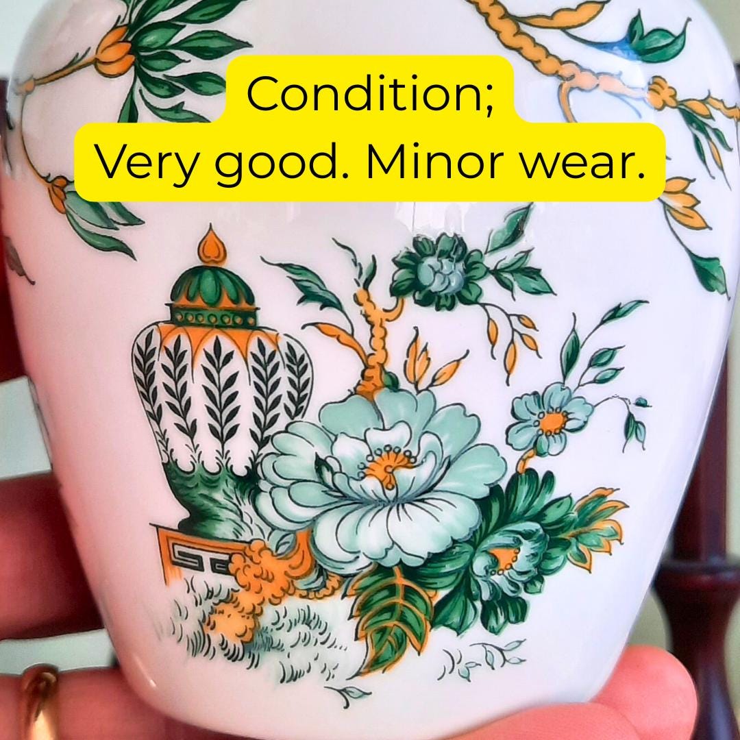Beautiful ginger jar, hand painted with beautiful Chinoiserie motif, that will look fab mixed with more English porcelain or your Chinoiserie.