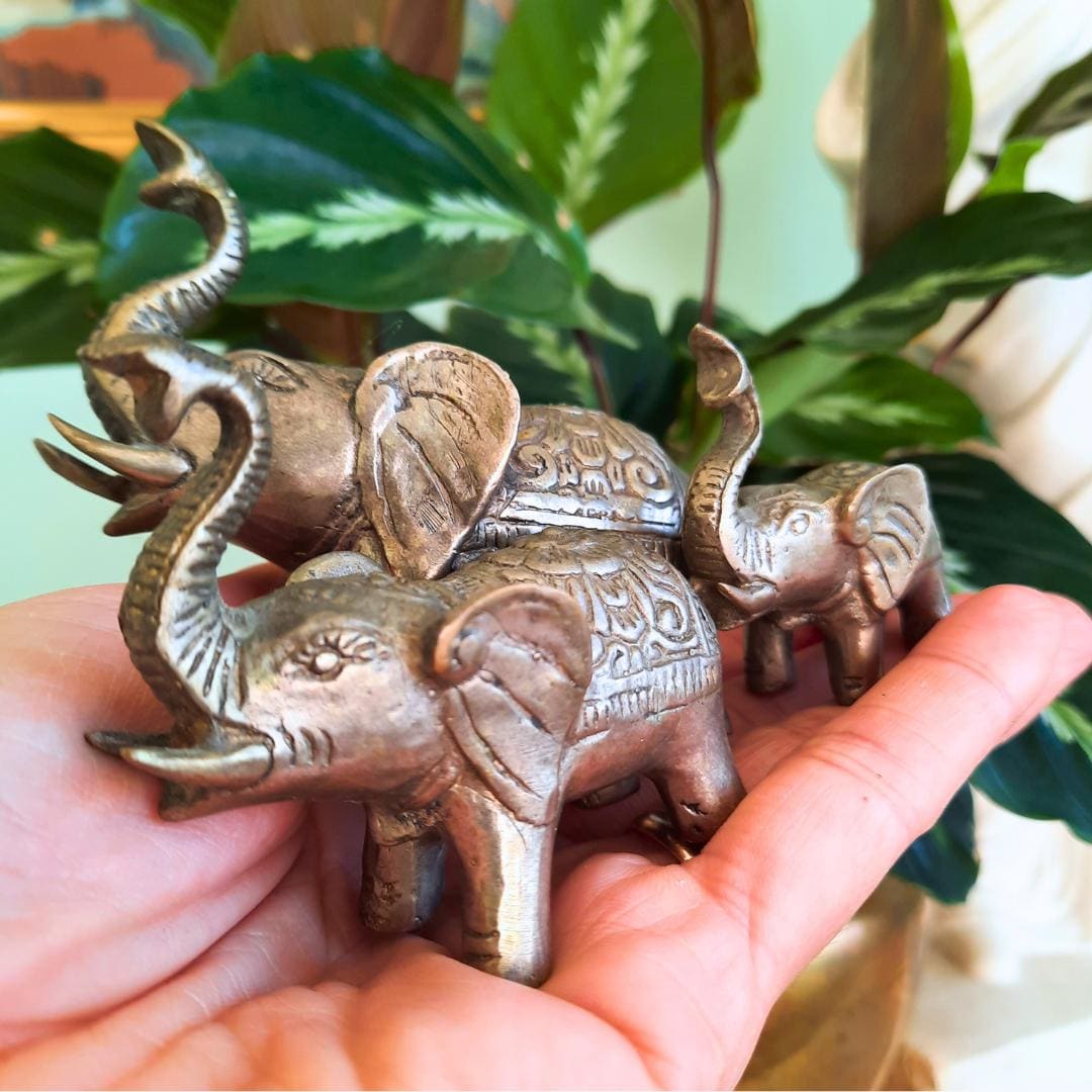 3 Small Vintage Indian Elephants Family Trunks Up Good Luck Made Of Alpaca Silver