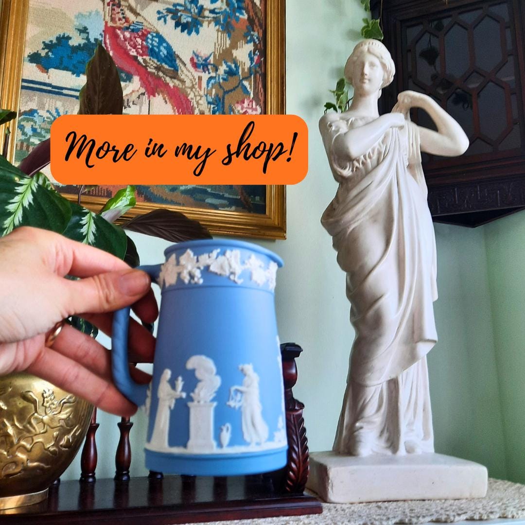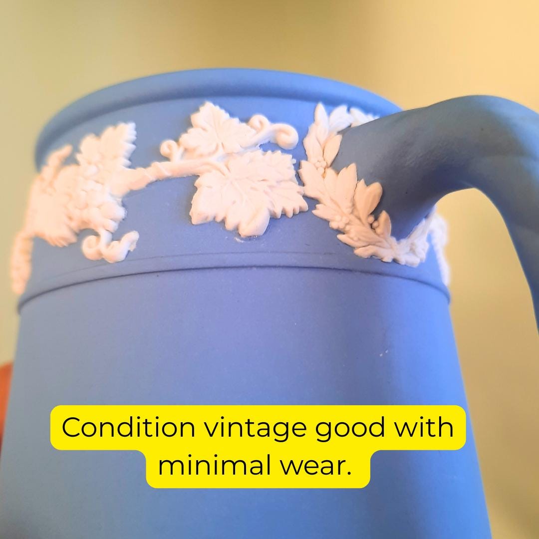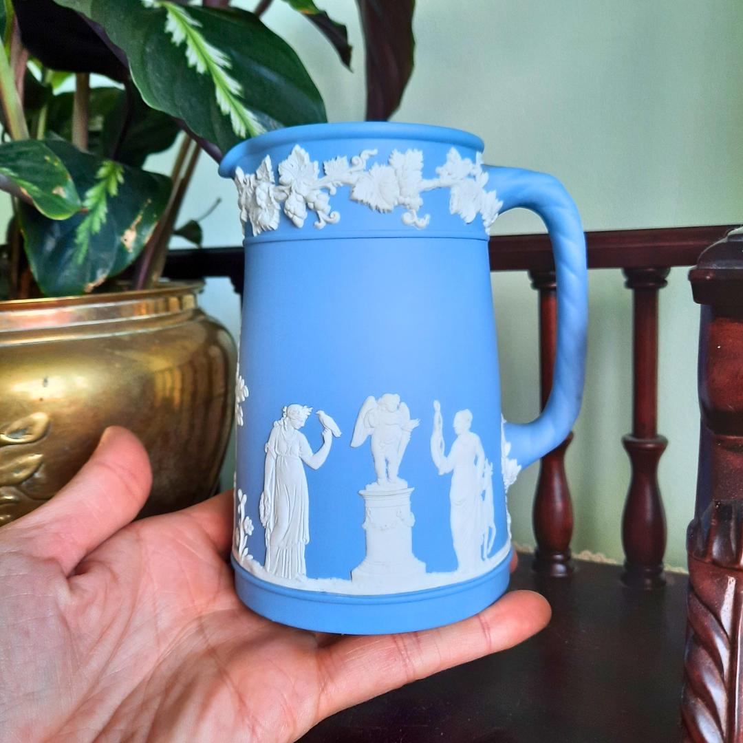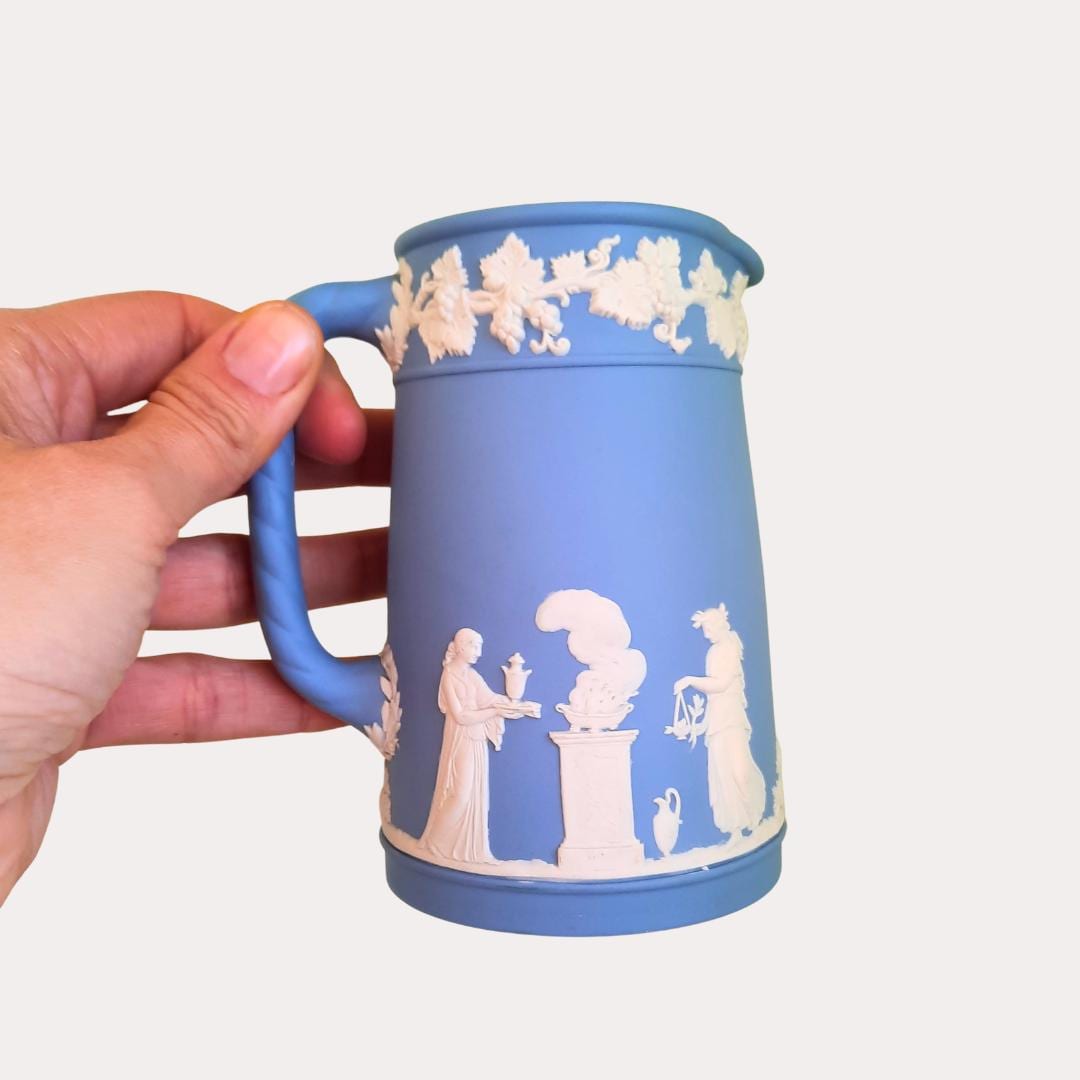 50's Wedgwood Light Blue and White Jasperware Trojan Jug 5'' Tall Neoclassical Made In England 1952