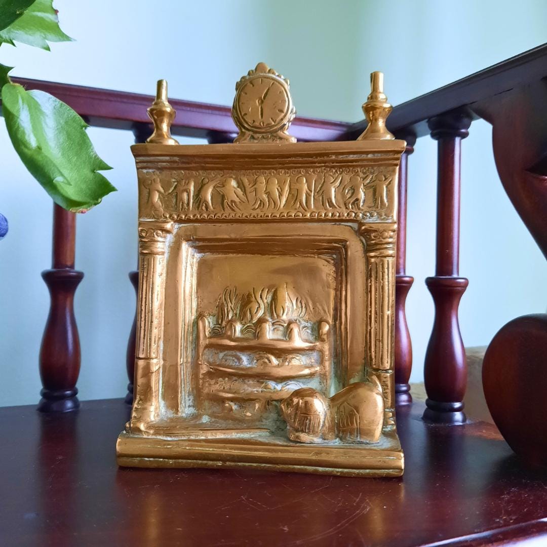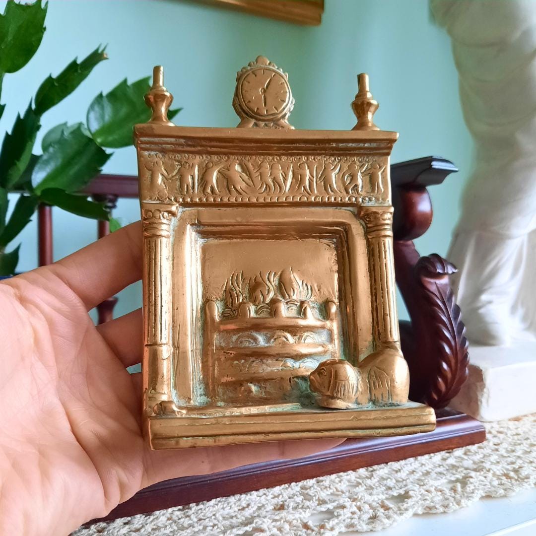 Vintage Brass Miniature Fireplace With Dog Ornament It Can Be Hanged.