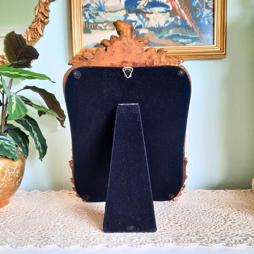 Vintage Florentine Style Resin Rococo Table Top Mirror Or Wall Mirror Can Be Hanged 15.2 In Tall