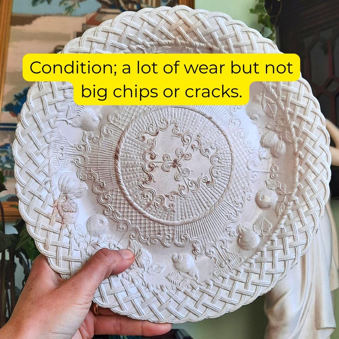 RARE Antique c1760 Staffordshire White Saltglaze Relief Basketweave And Fruits Decorative Plate