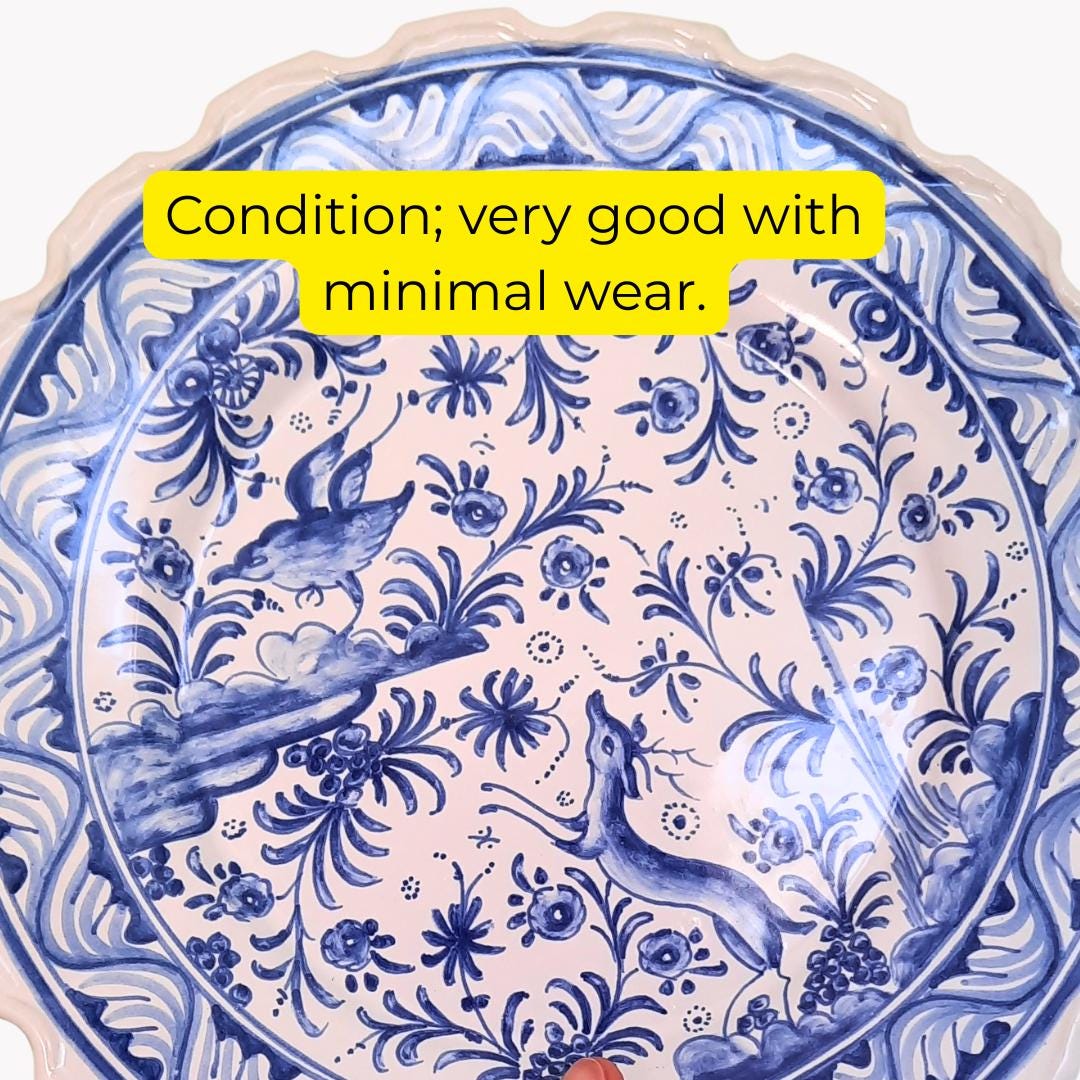 Vintage Coimbra Ceramic Blue And White Hand-painted Decorative Wall Plate XVII Century Recreation 10.7''