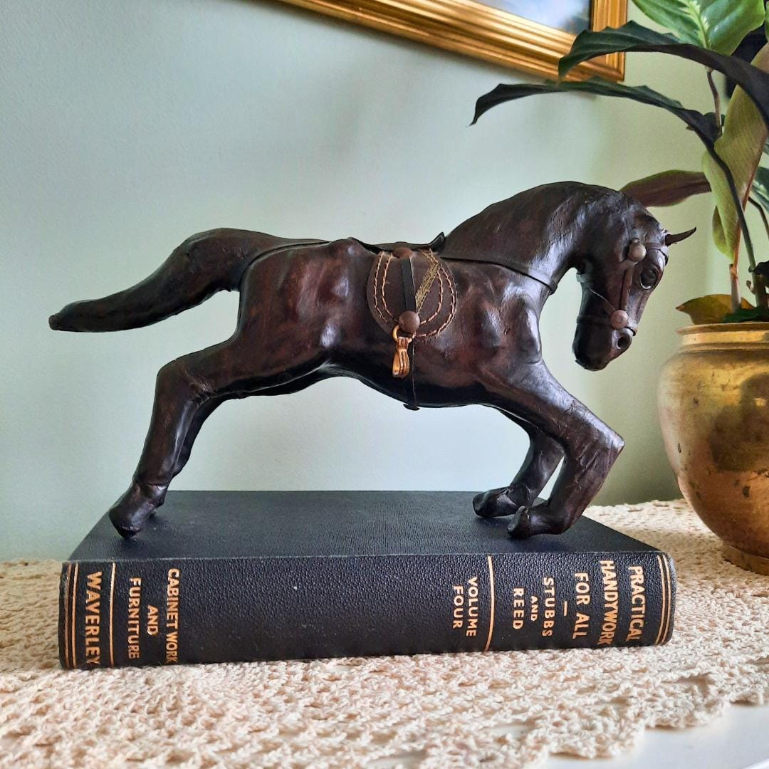 Mid Century Liberty's Style Leather Wrapped Horse Statue Equestrian Figure Sculpture.