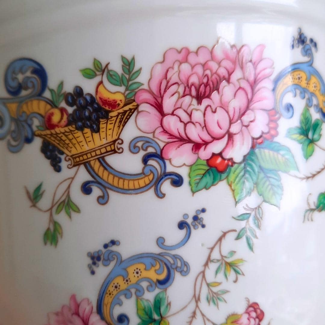Small Crown China Chelsea Manor Pattern Porcelain Chachepot H 4.2'' Floral Decoration