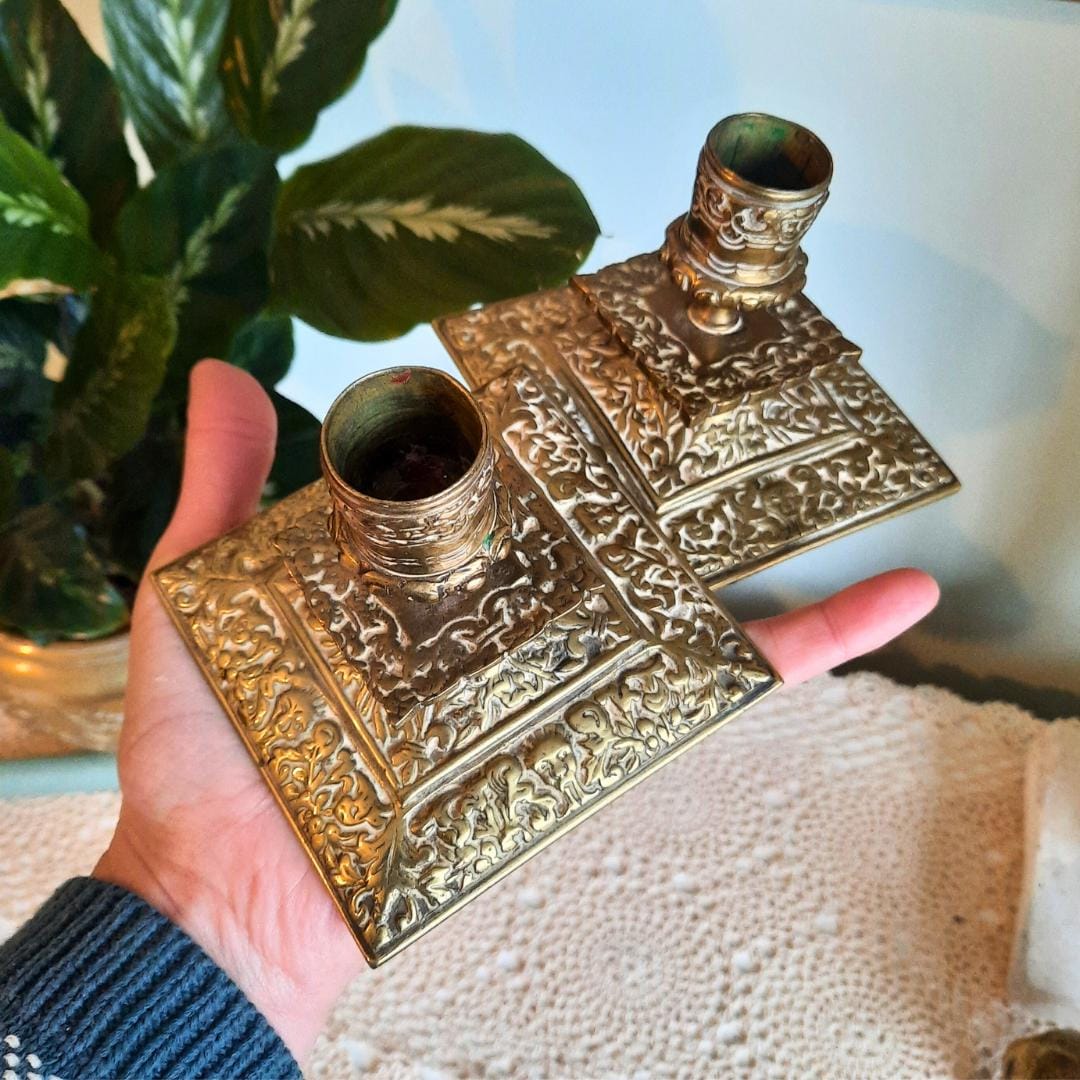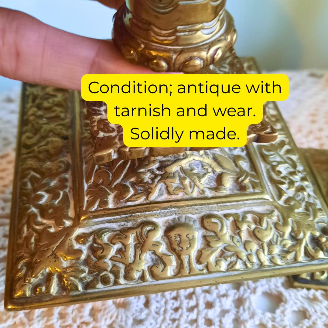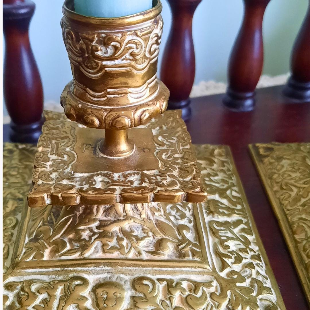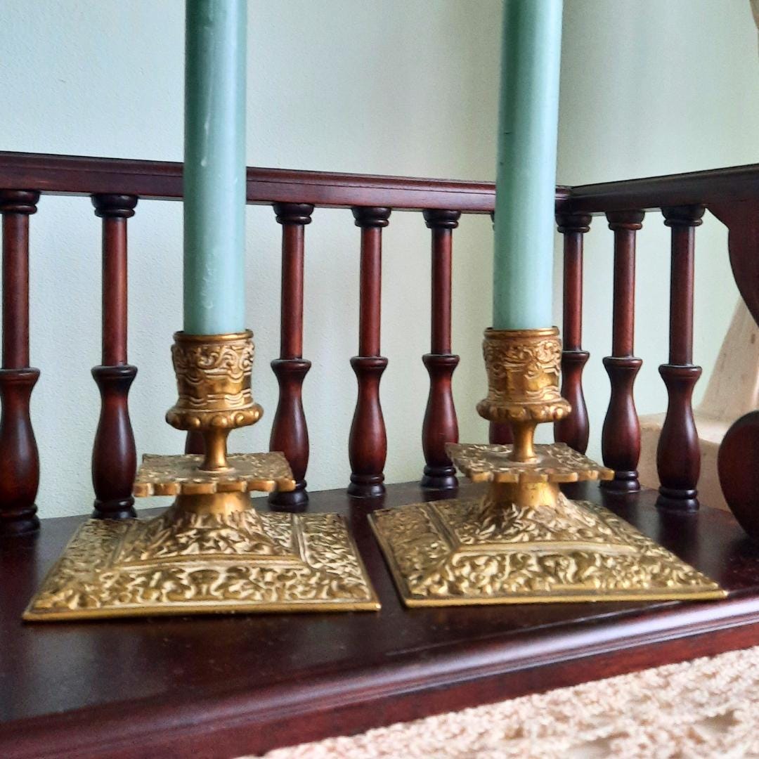 This truly antique and quality pair of candle-sticks holders would make a nice decorative addition to any quality desk or interior. Also they will make a wonderful gift for the lover of vintage and beautiful home decor that will be treasured forever!