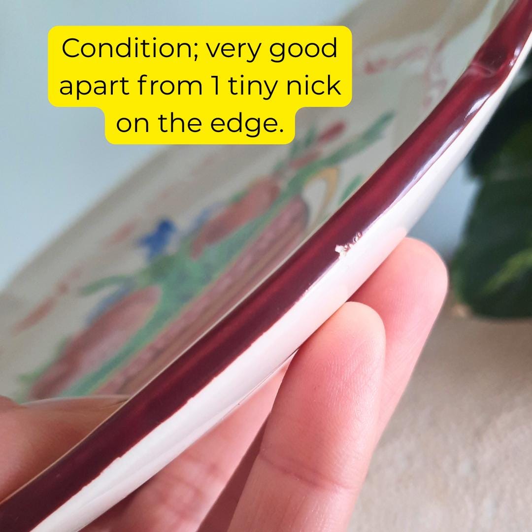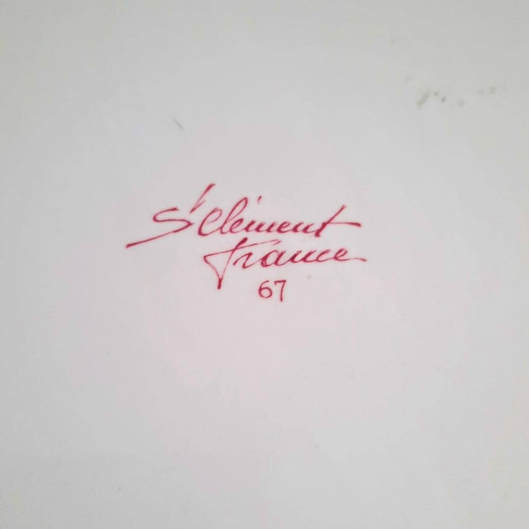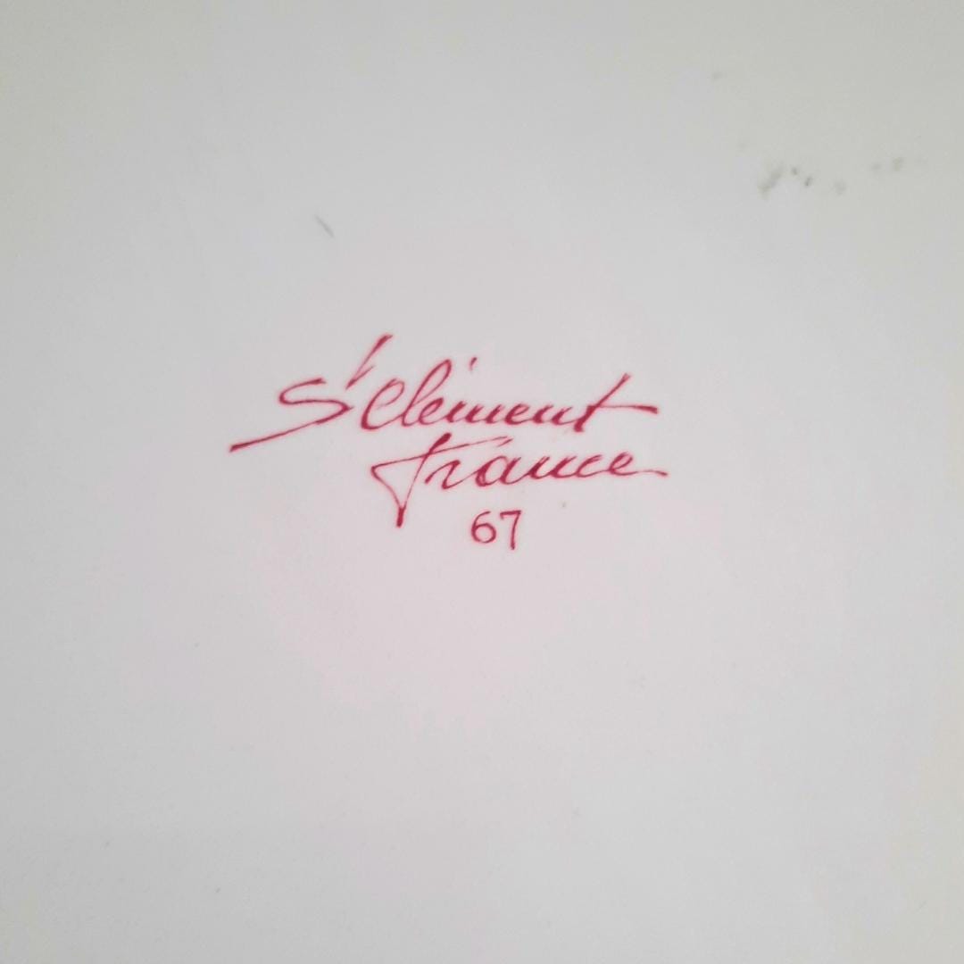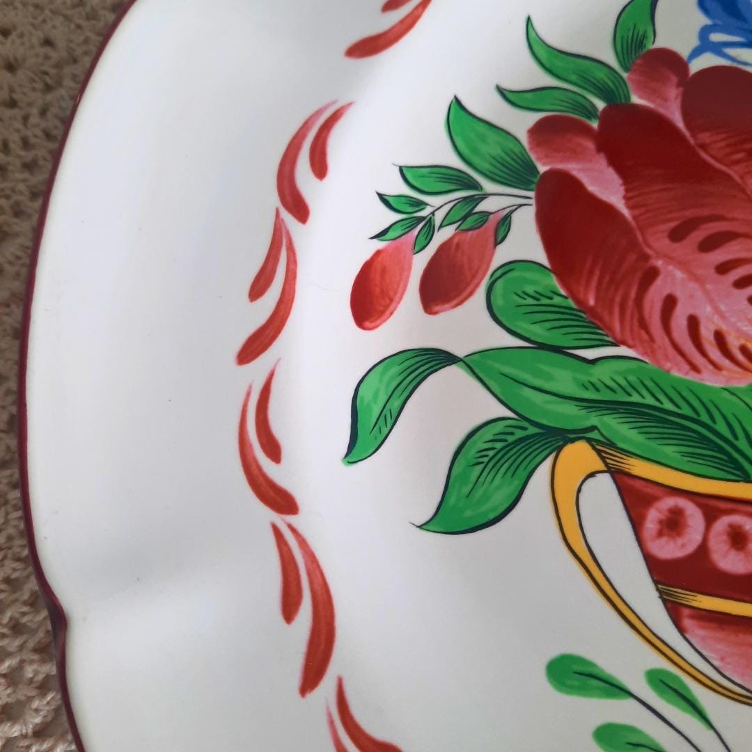 Vintage 50's French Saint Clemet Ceramic Hand Painted Tulips and Bluebells Faience Scalloped Plate.