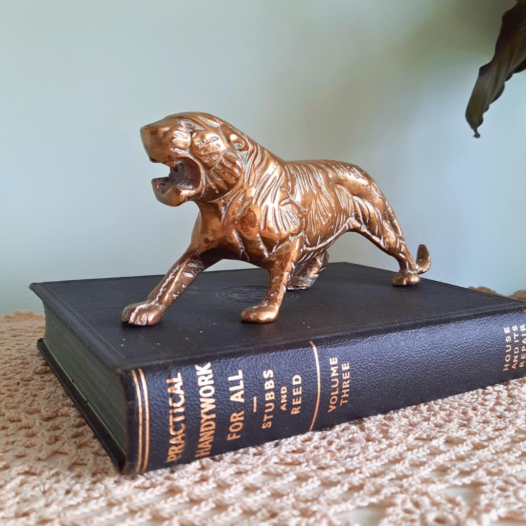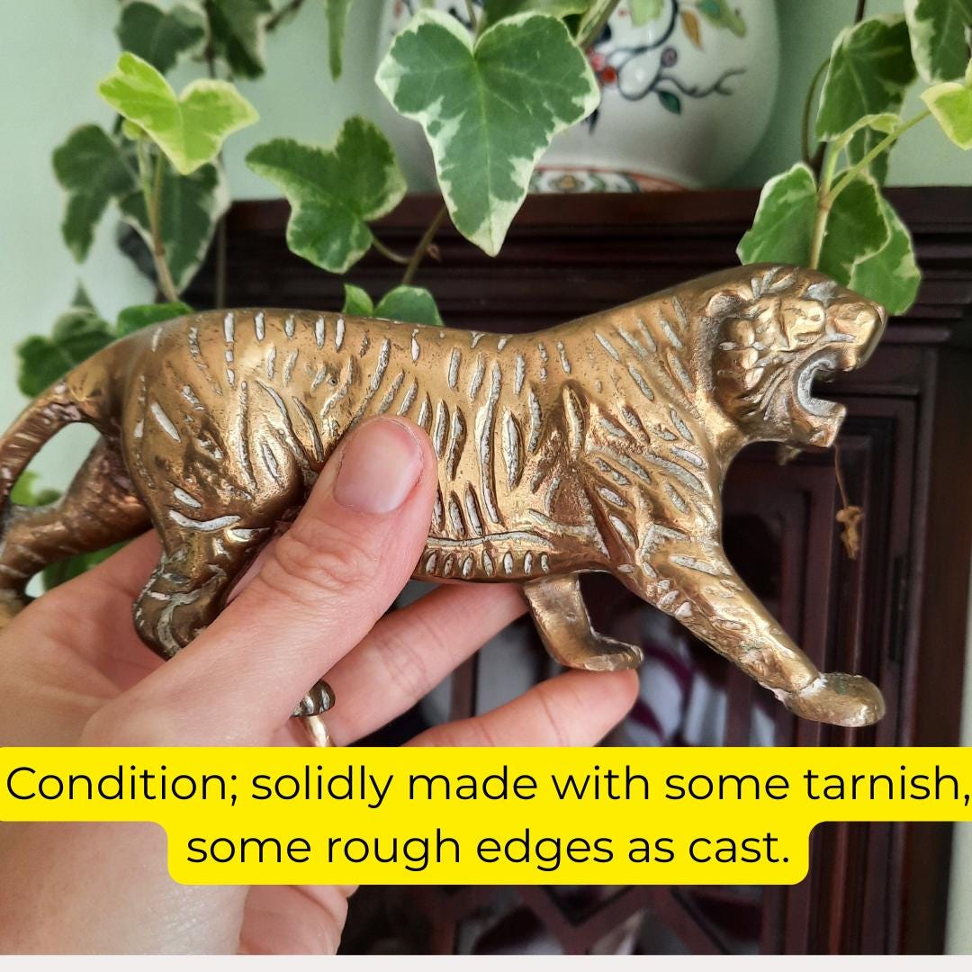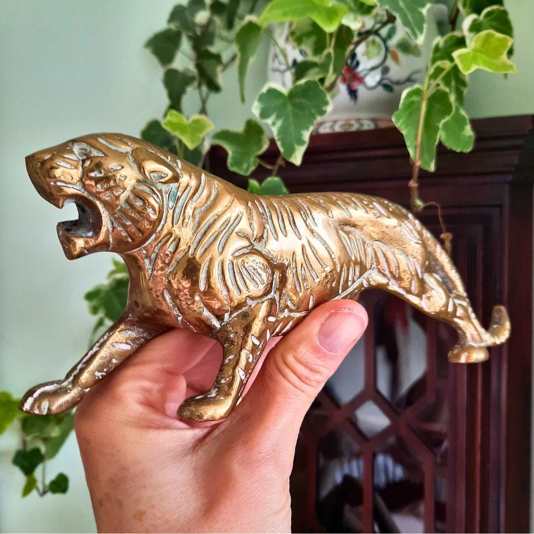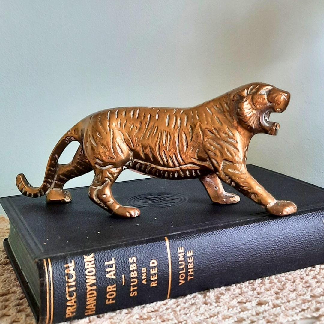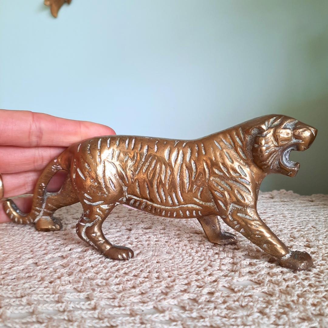 Truly Vintage Mid Century Brass Tiger Figure 8 in long C 1960's.