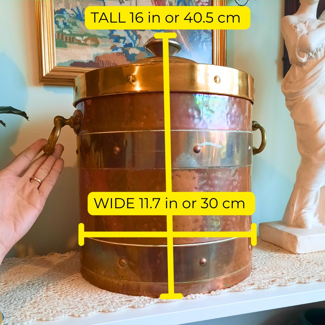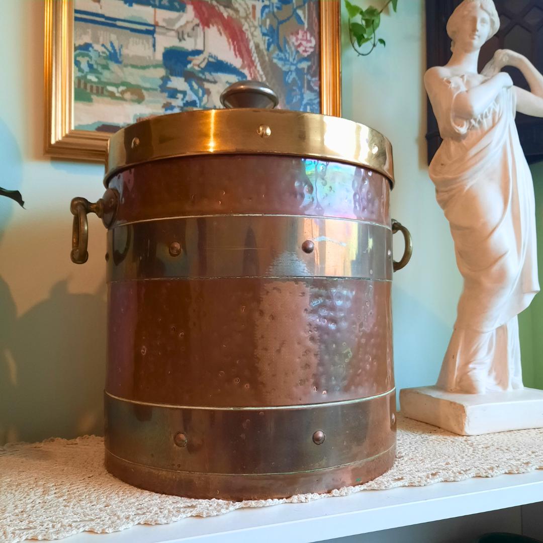 Large Antique Edwardian Copper and Brass Lidded Coal or Logs Bin Fireplace Decor.