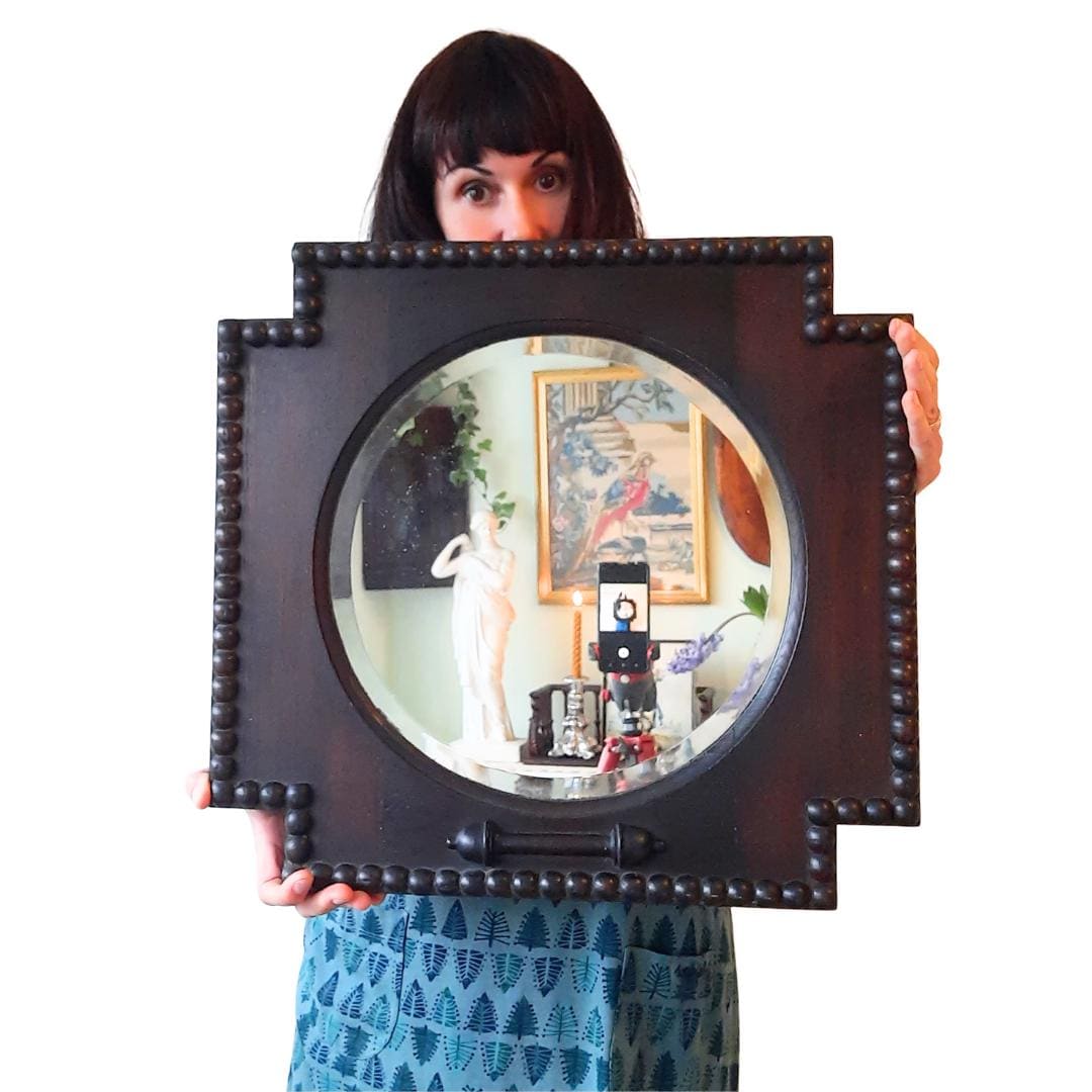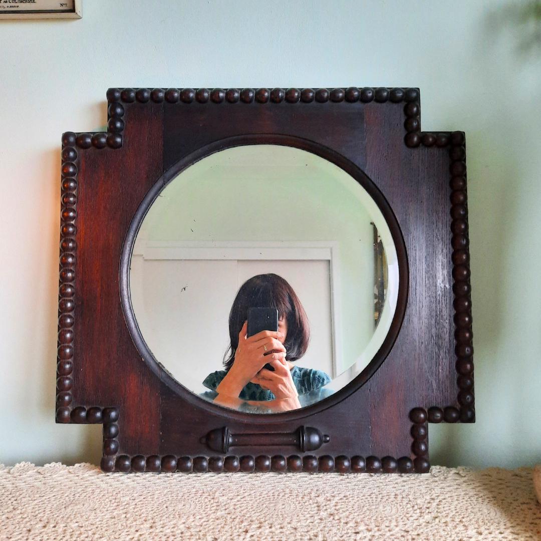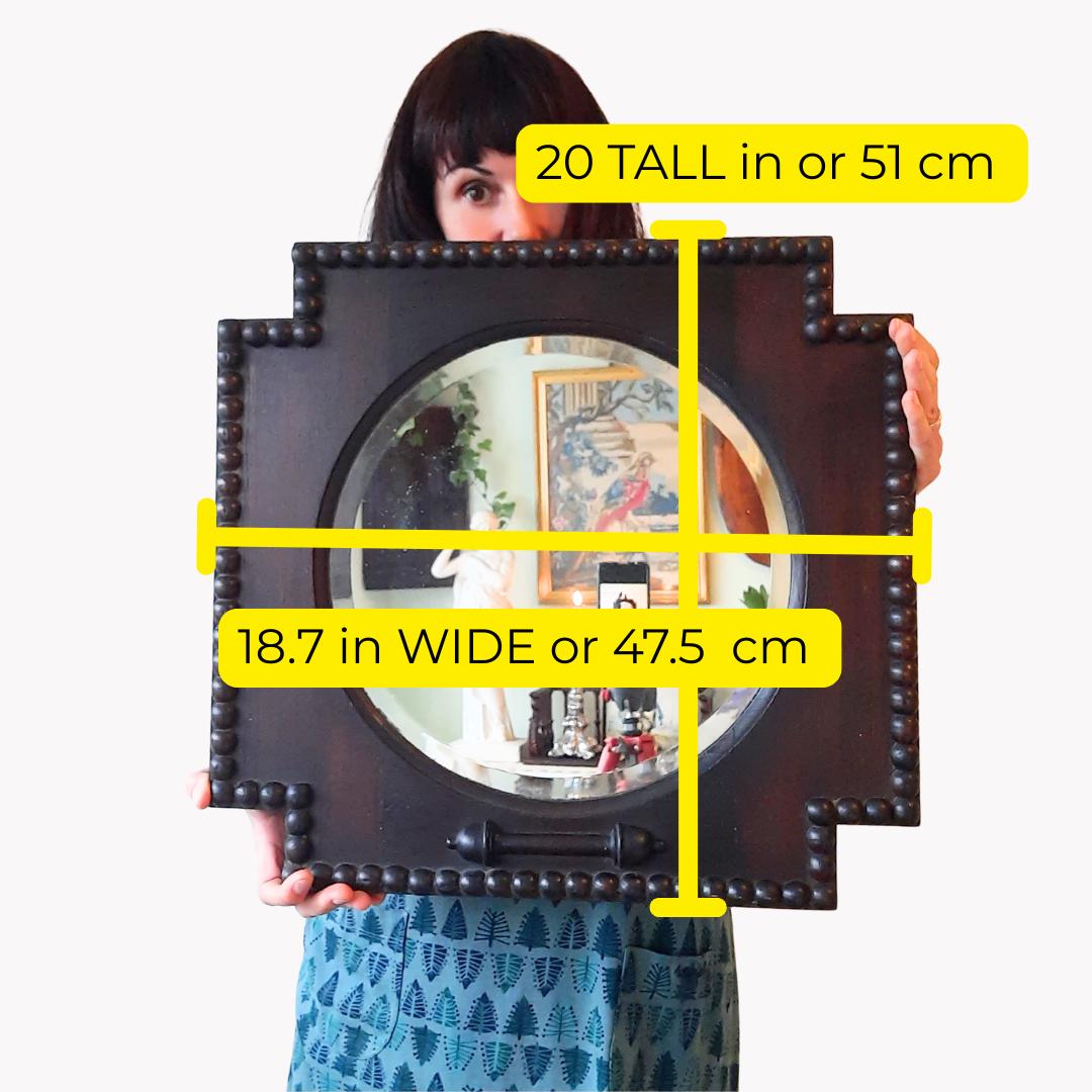 Condition; antique good with some wear to the mirror and wood. Overall very good for age and solidly made. See photos.