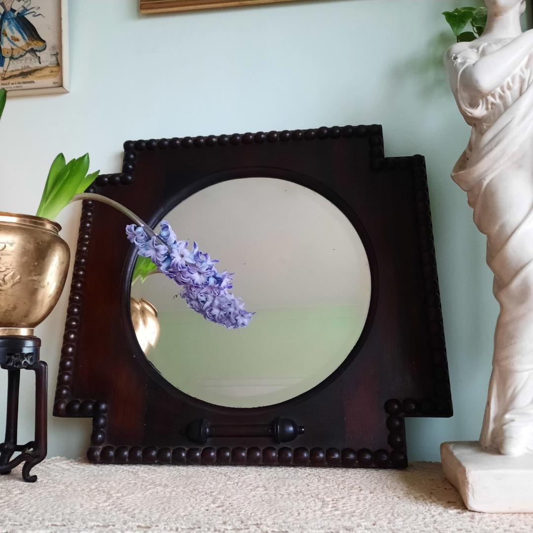 Antique Jacobean Style Wood Bevelled Mirror Rope Effect Edge C 1920's.