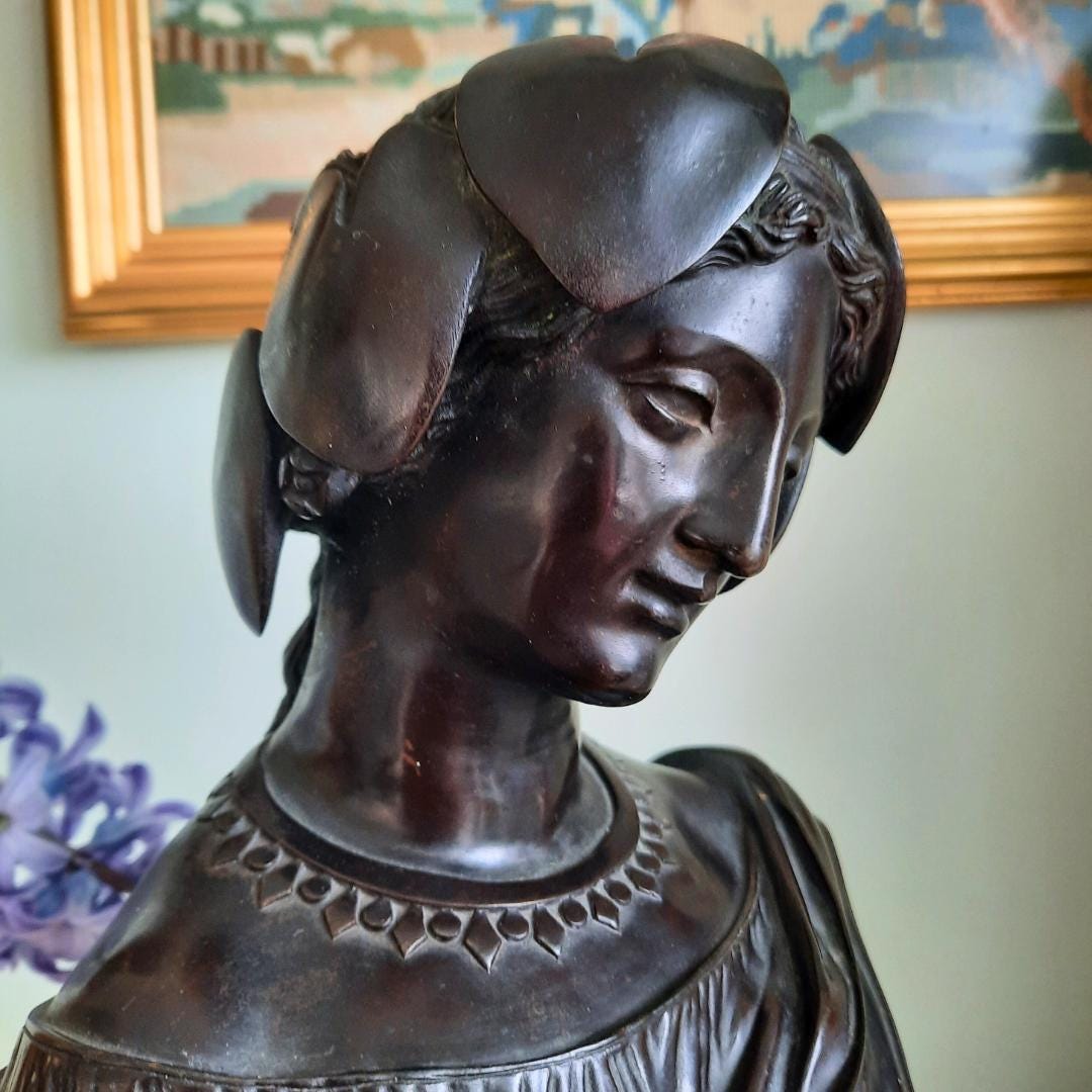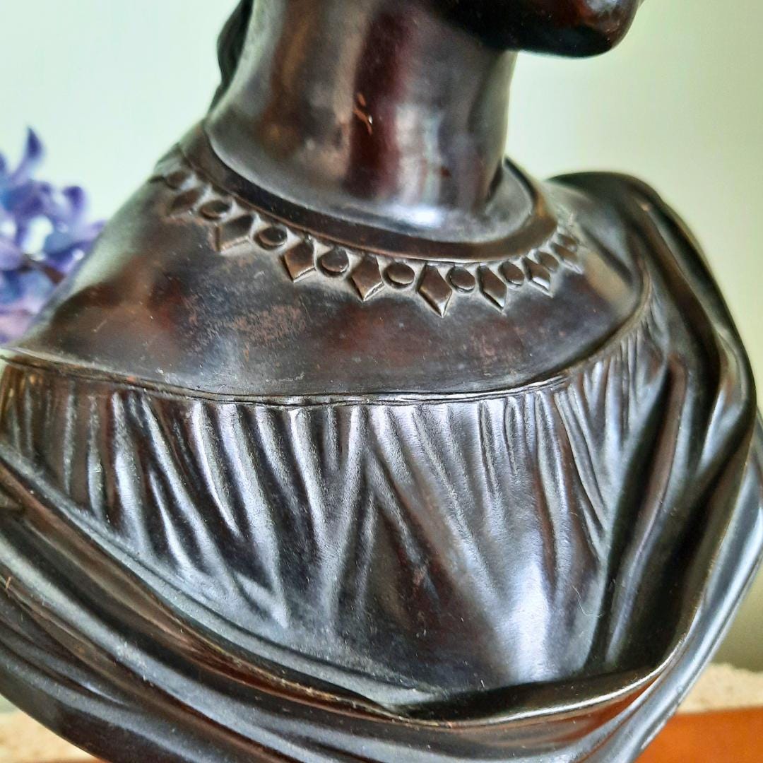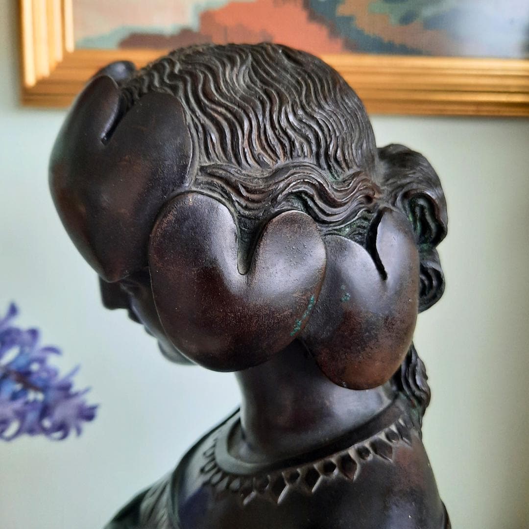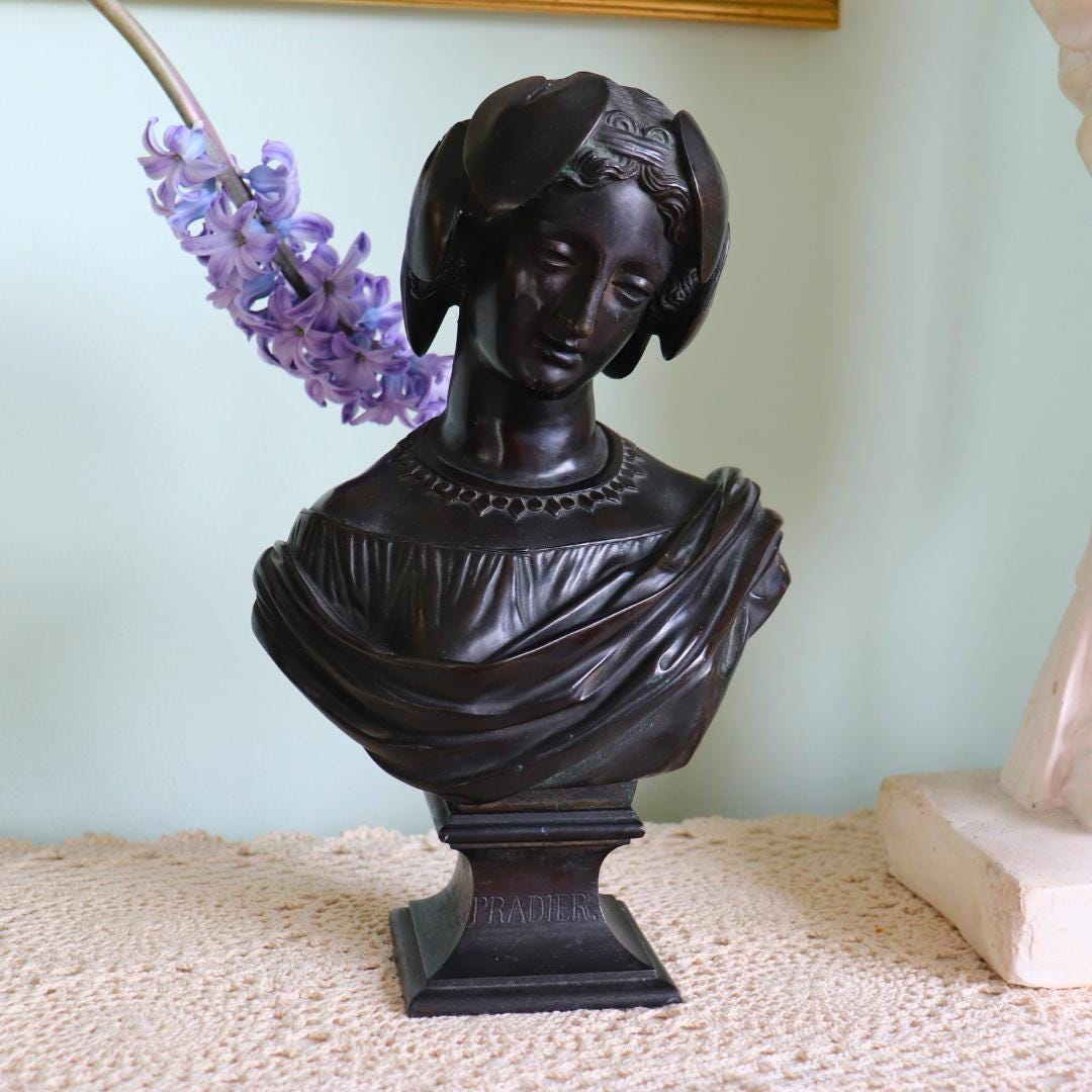 Antique Victorian Neoclassical Cast Bronze Bust Of Sapho After Pradier C Late 1800's.