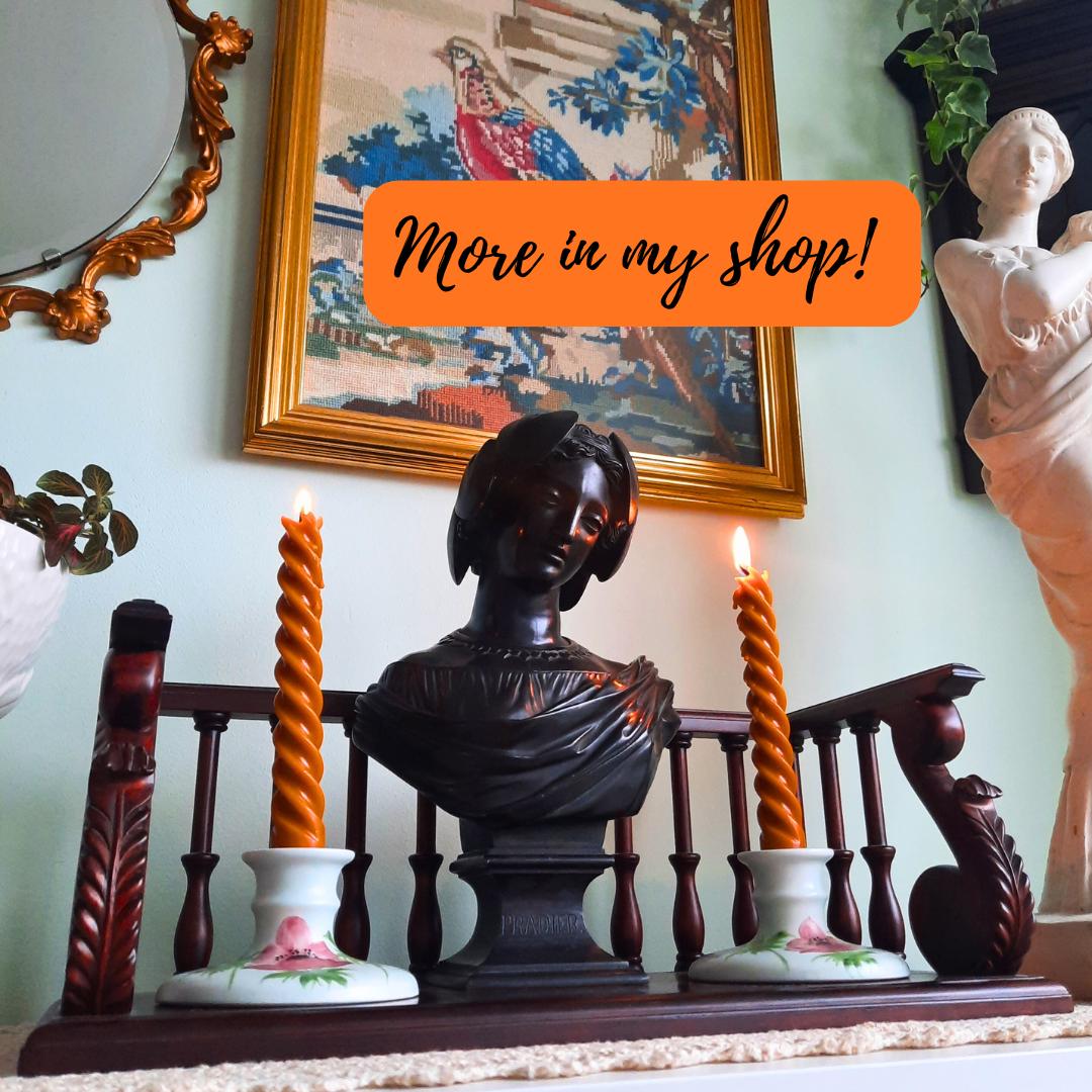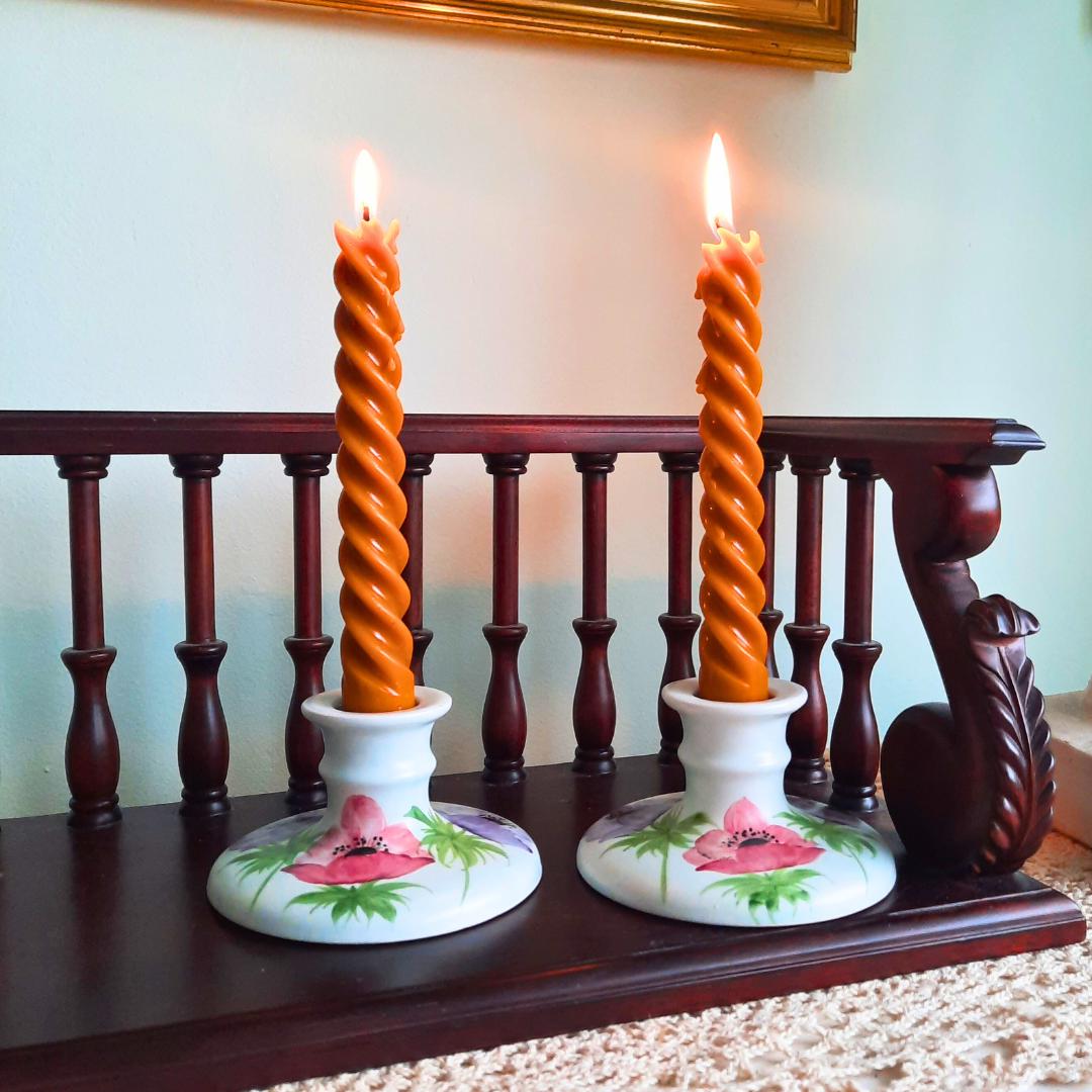 Beautiful pair of 1930's ceramic candleholders with a beautiful hand-painted floral theme, that will make a wonderful addition to any quality home and also a charming gift for the home to be treasured forever!