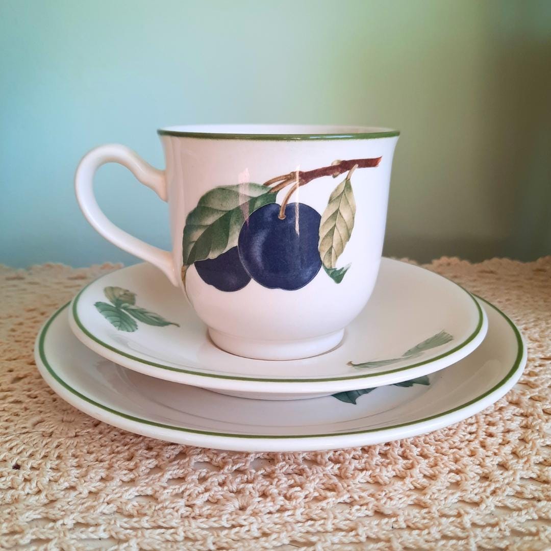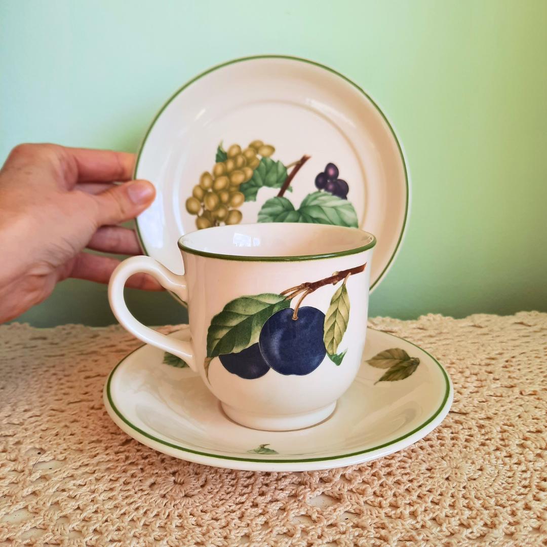 This pretty tea or coffee trio with a super sweet fruits pattern is perfect to add that retro touch to your tea parties. Also will make the cutest gift for the lover or pretty things or collector of retro tea cups.